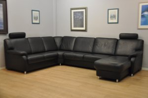 Très beau salon CUIR 240x290cm noir "relax" moderne