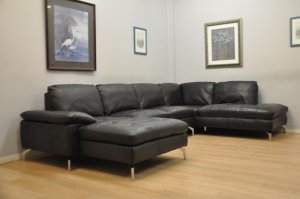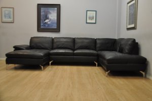 Très beau salon CUIR 155x335x210cm Noir carré moderne