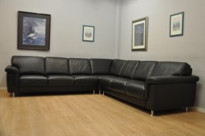 Très beau salon CUIR 240x290cm noir "relax" moderne