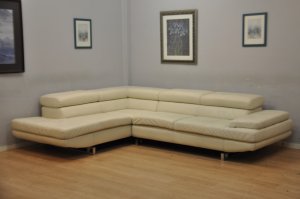 Très beau salon CUIR 3+2 blanc cassé confort