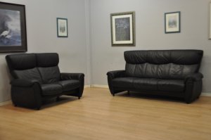 Très beau salon CUIR 240x290cm noir "relax" moderne
