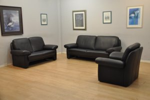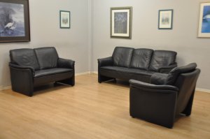 Très beau salon CUIR 240x290cm noir "relax" moderne