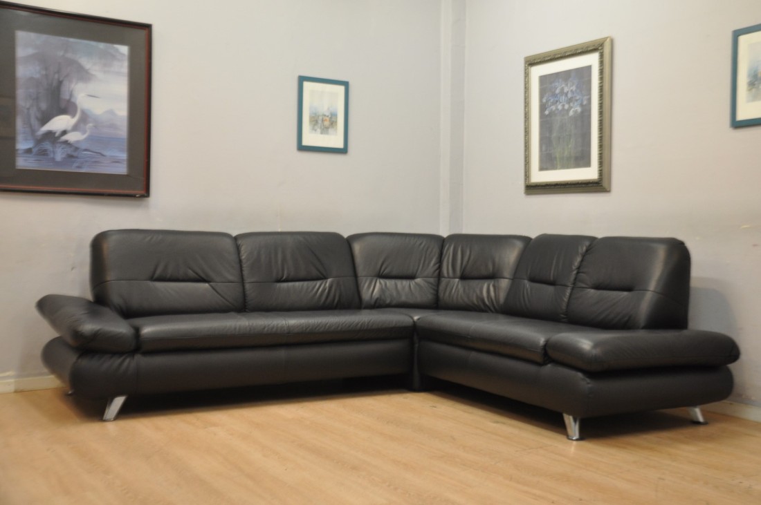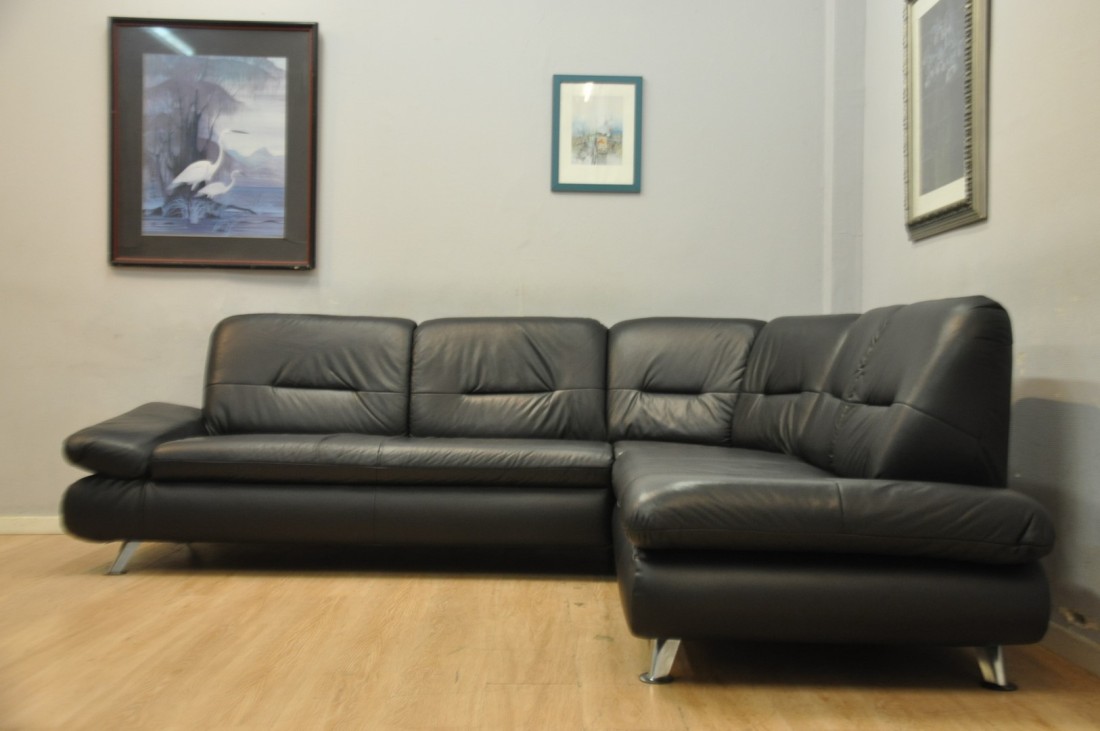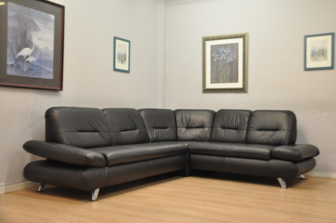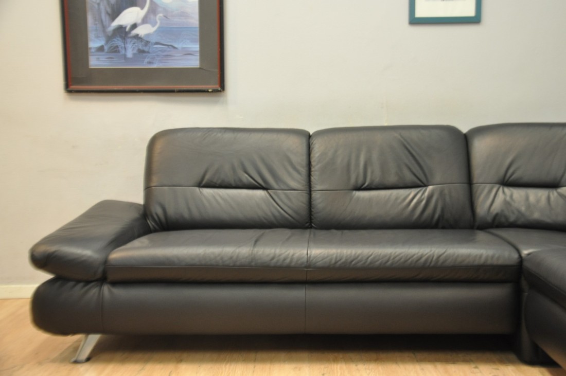 superbe salon en vrai cuir de couleur noir