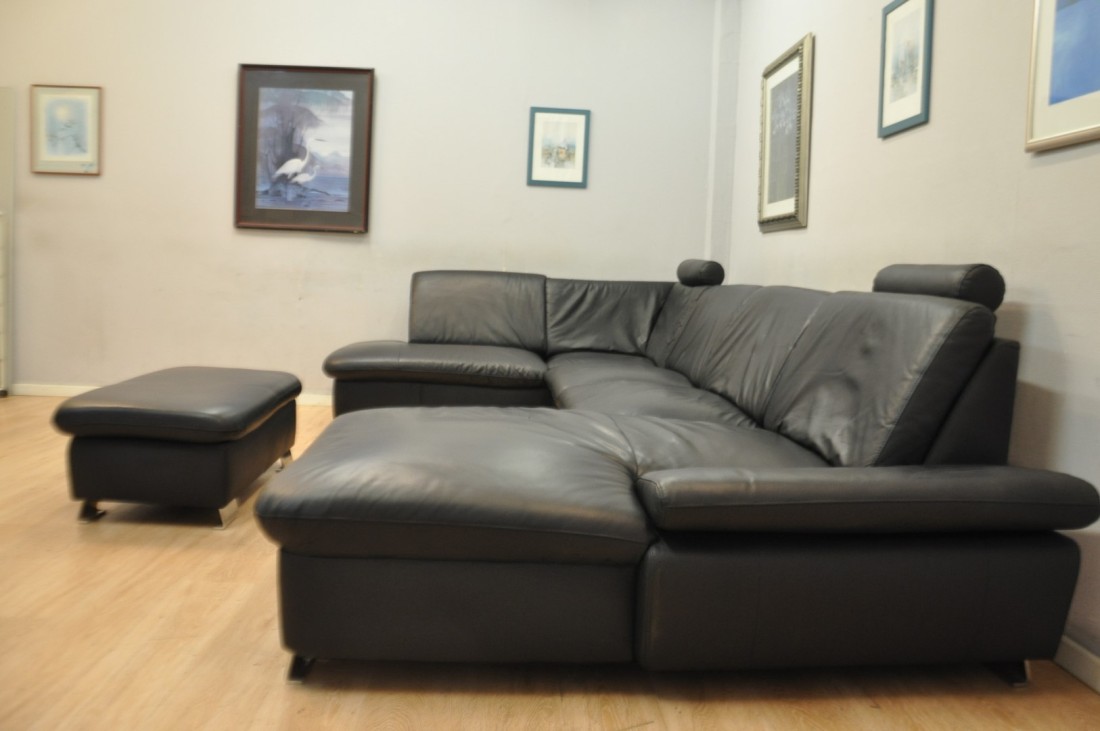 superbe salon en vrai cuir de couleur noir