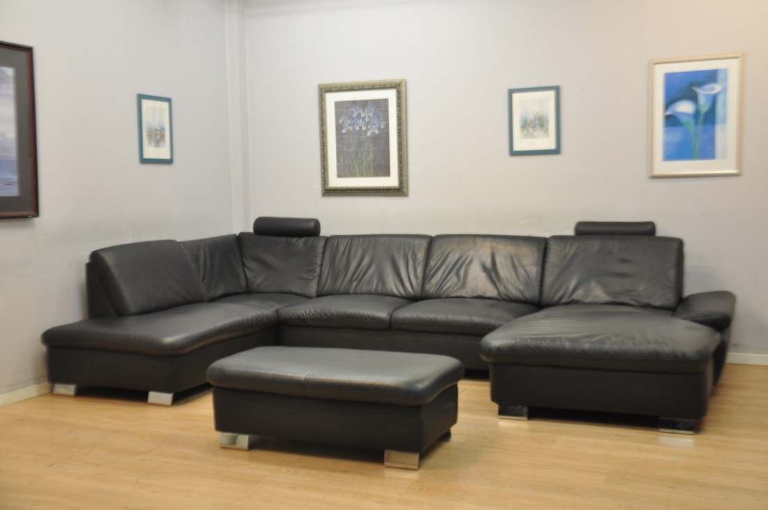 Superbe salon CUIR 200x370x170cm NOIR moderne