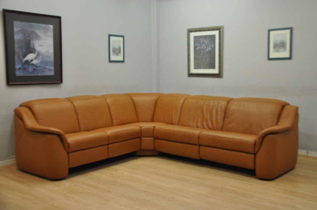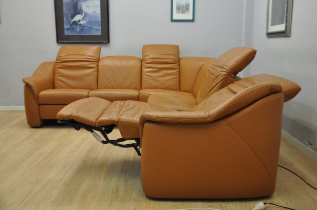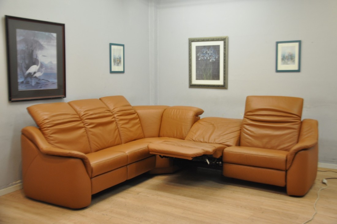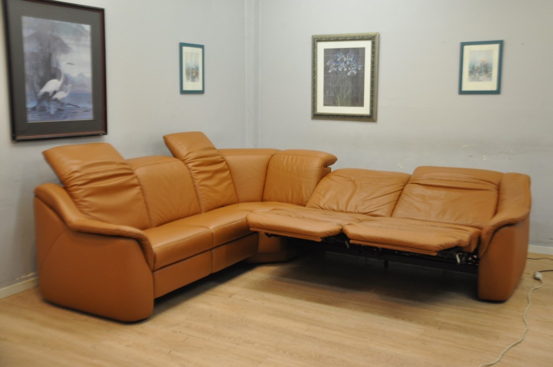 Superbe salon CUIR brun clair 260x290cm 2 Relax élec.