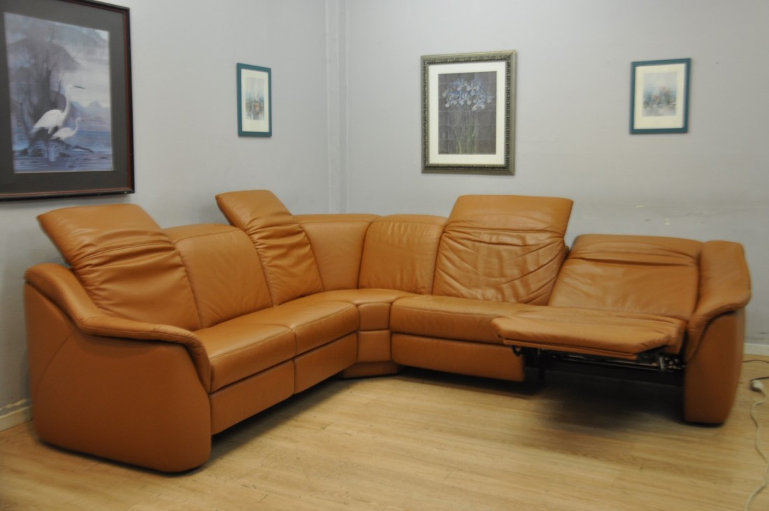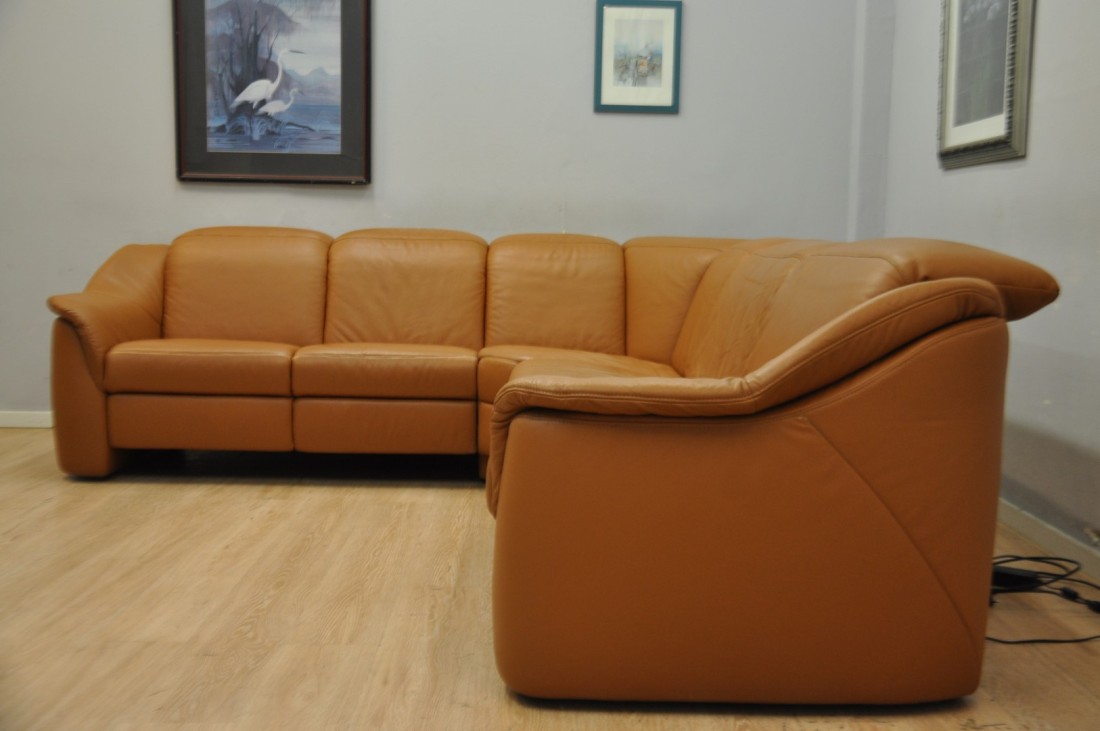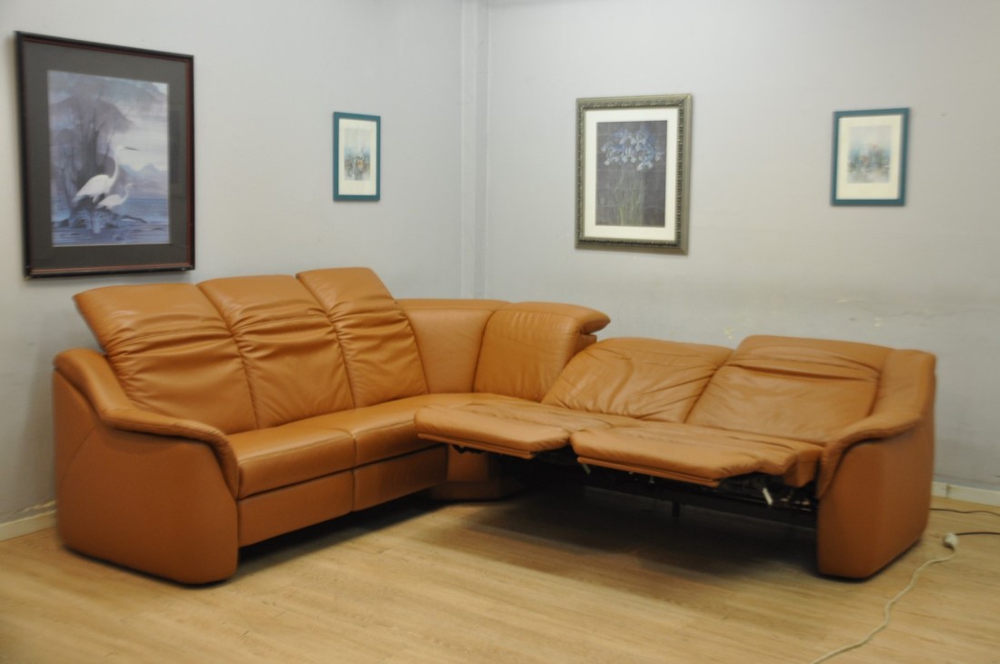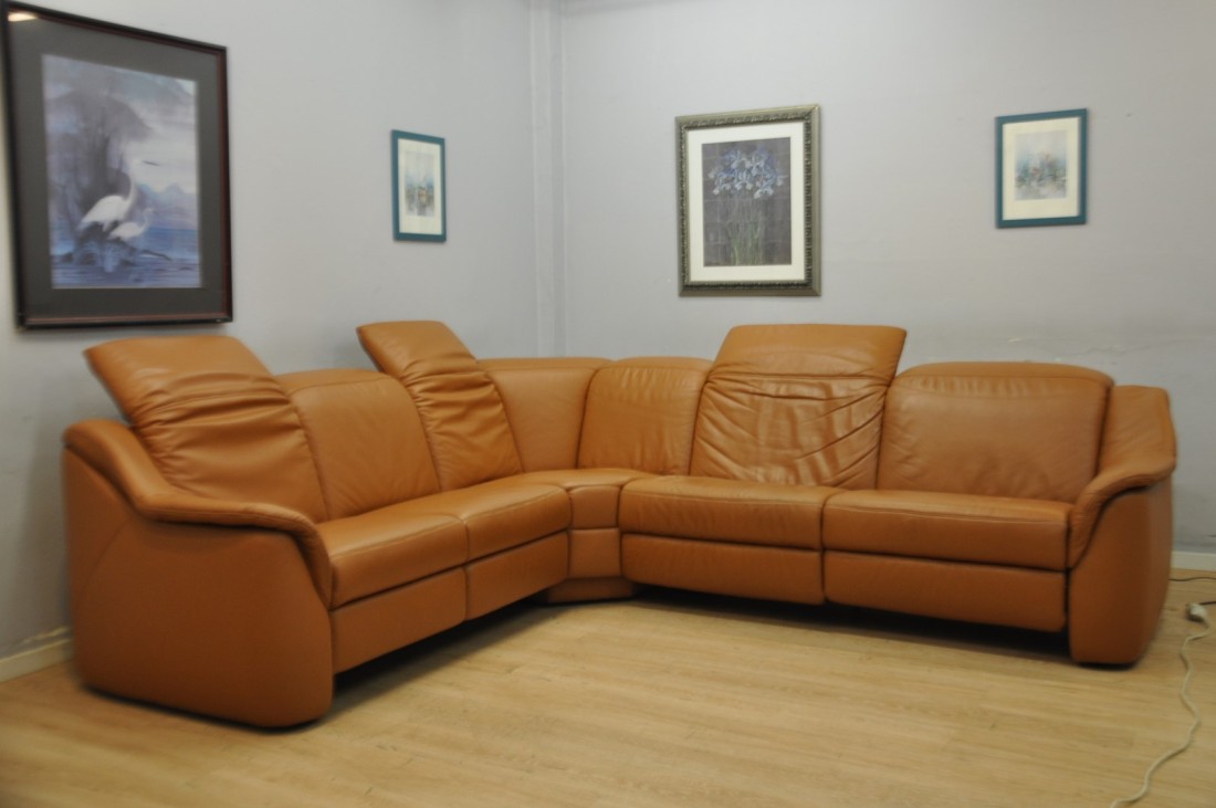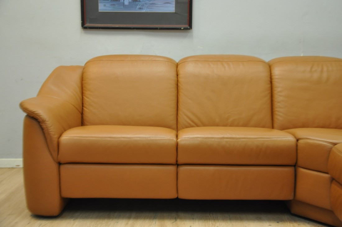 Superbe salon CUIR brun clair 260x290cm 2 Relax élec.