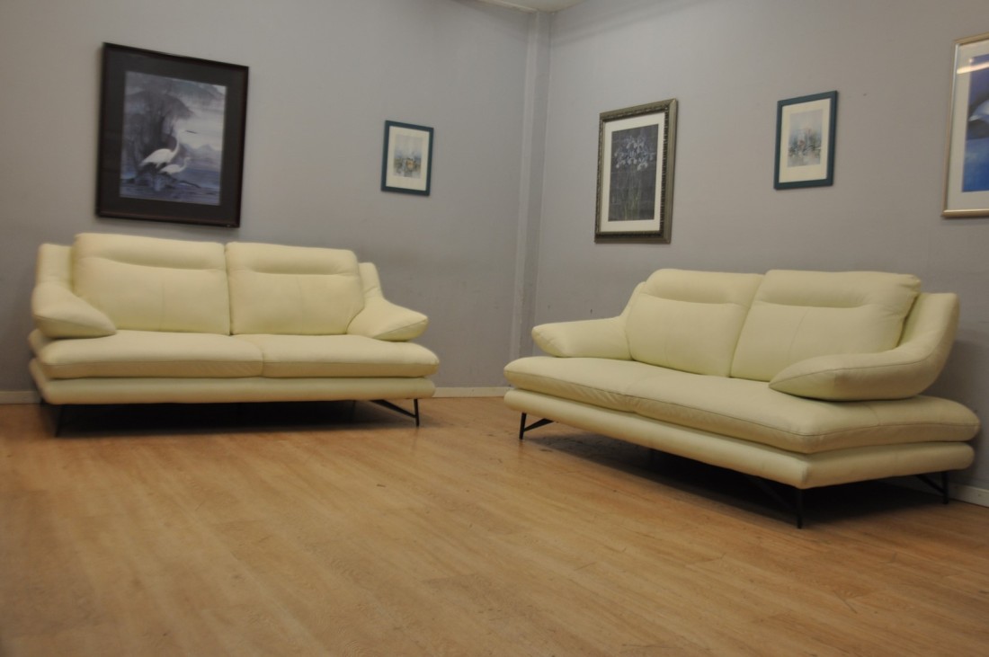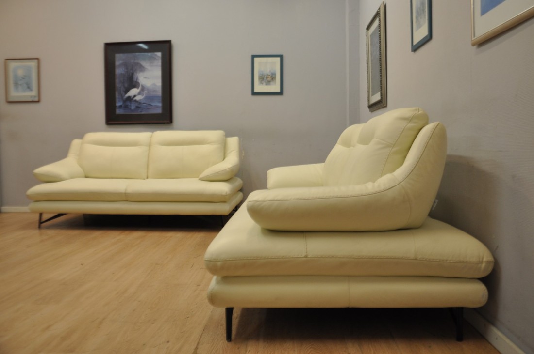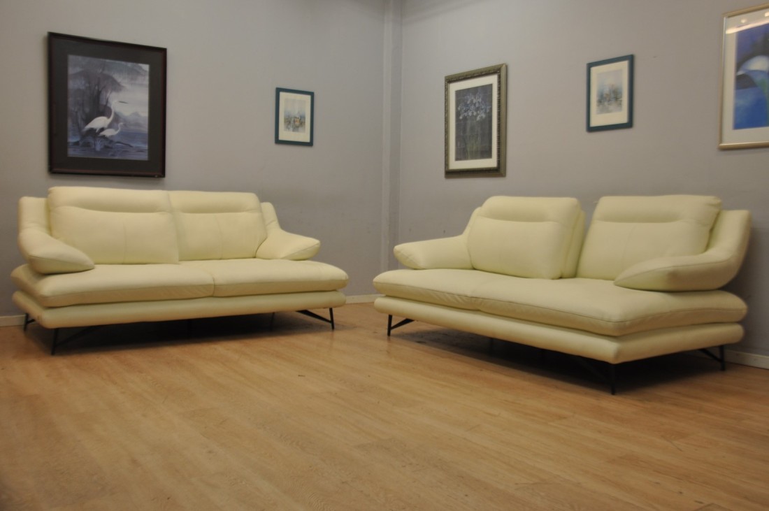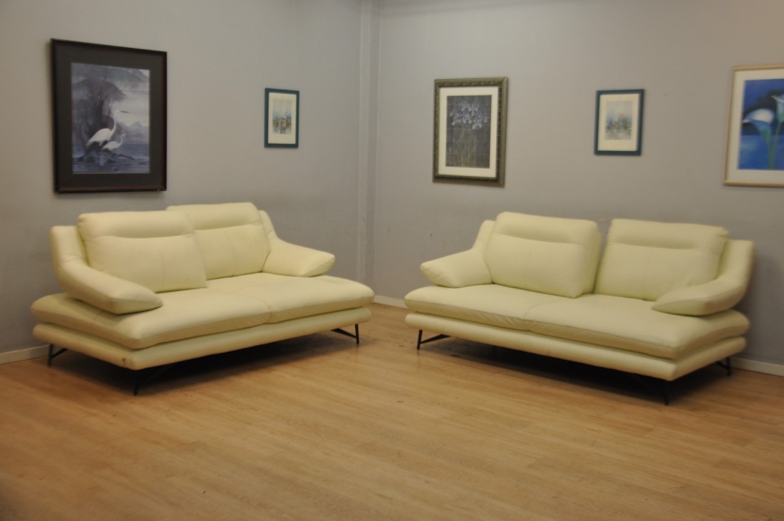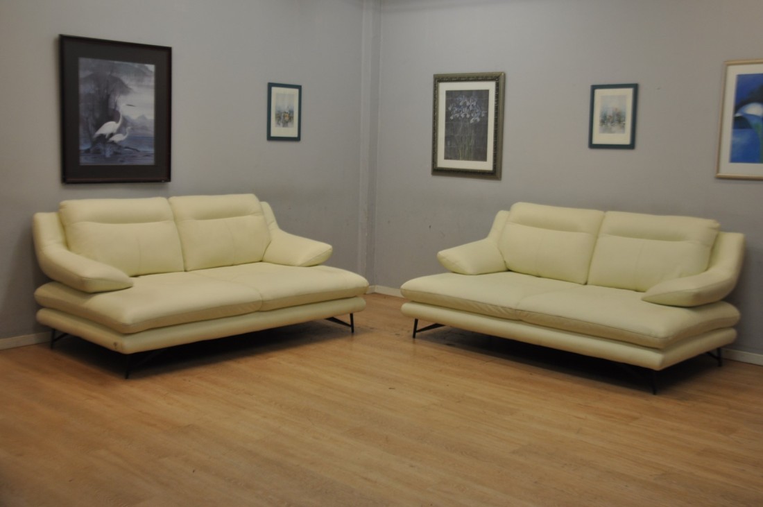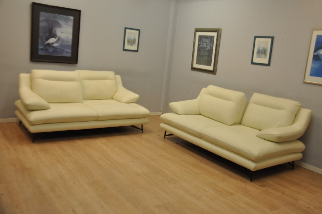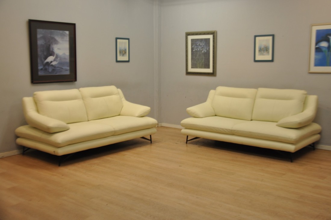 Superbe salon CUIR 3+3 blanc moderne haut de gamme Neuf*