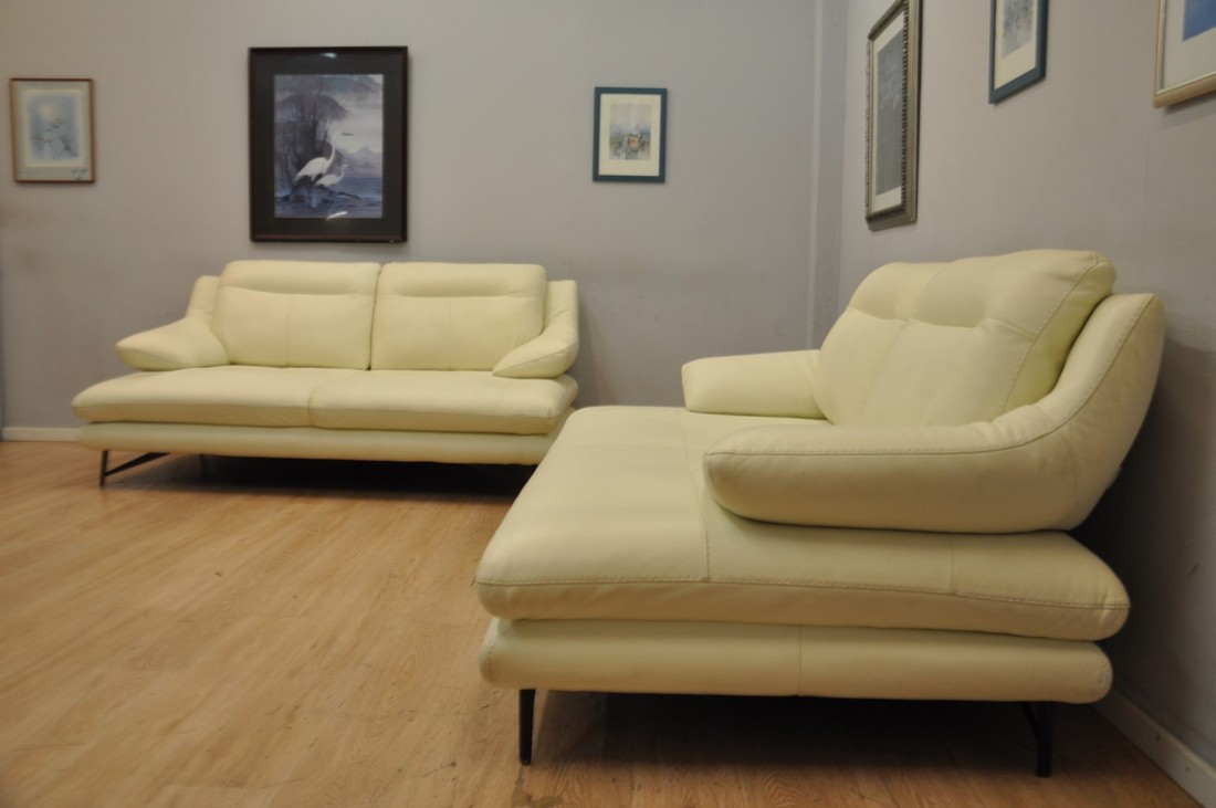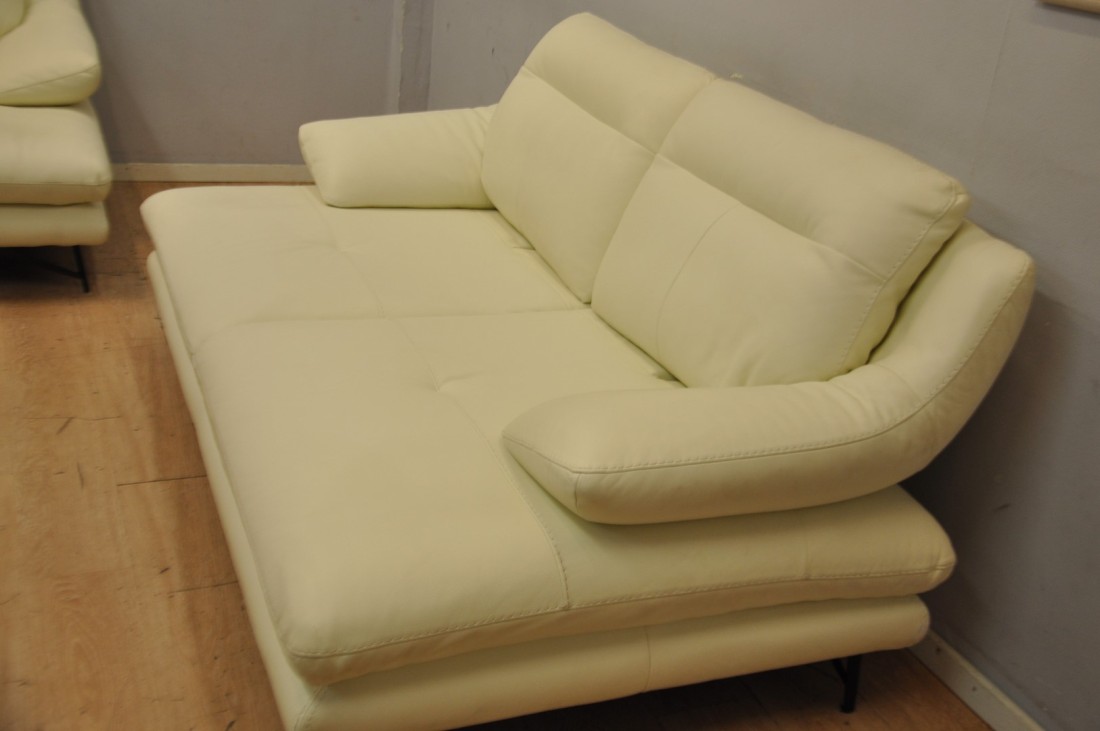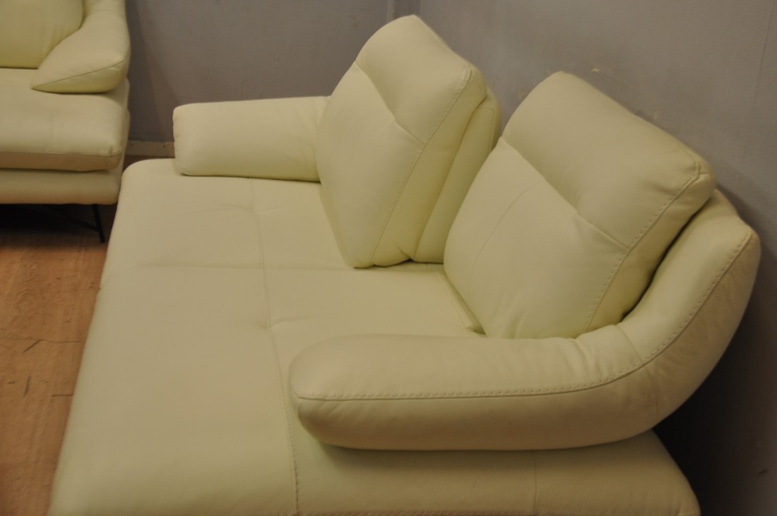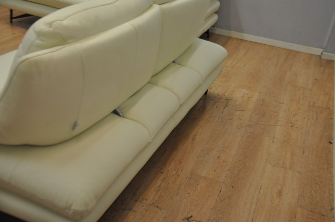 superbe salon en vrai cuir de couleur blanc haut de gamme, il est beaucoup plus clair ! que sur les photos