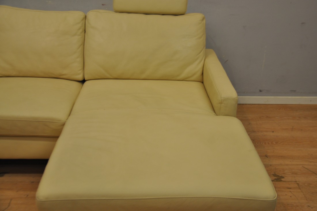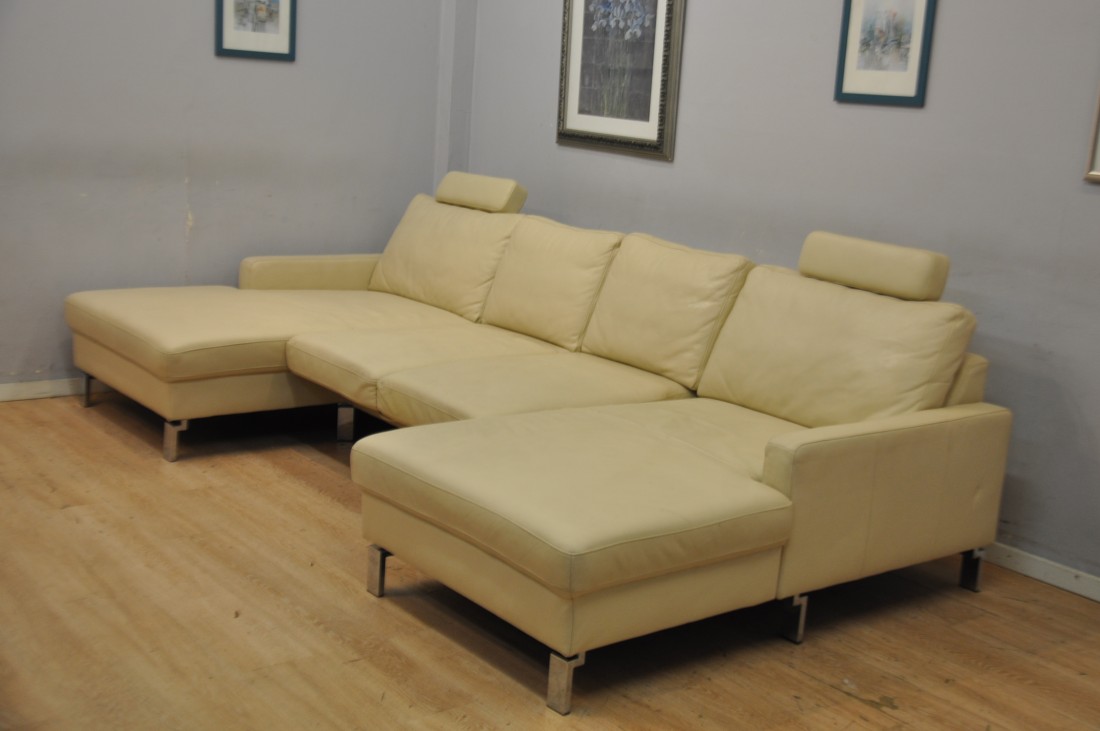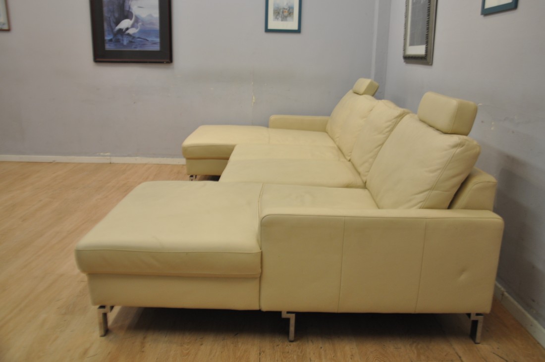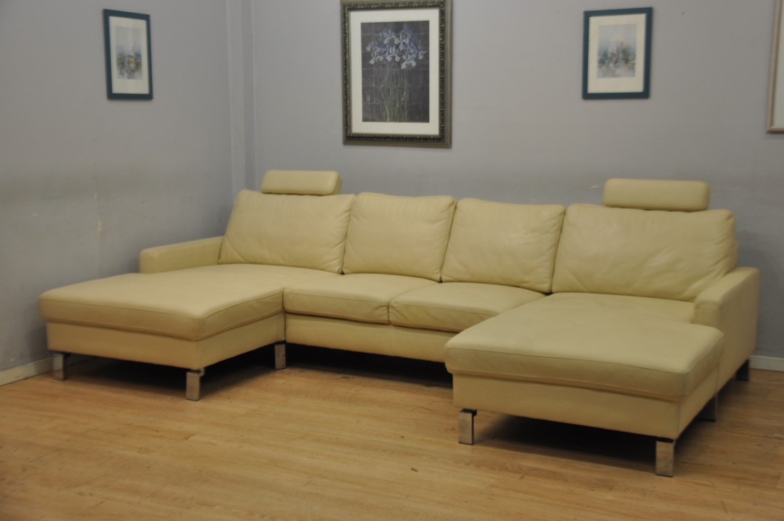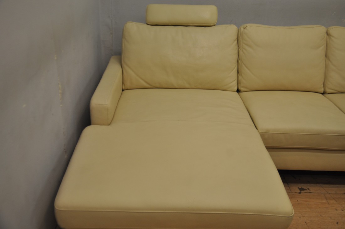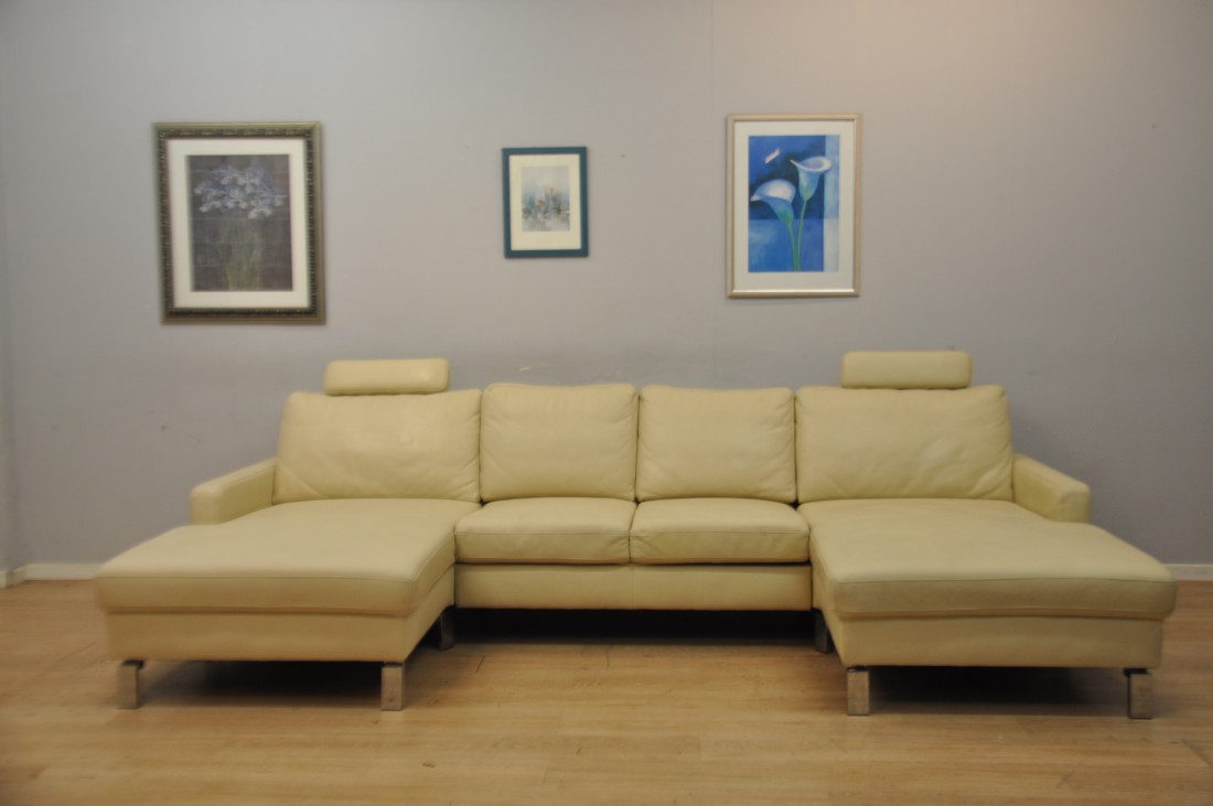 beau salon en vrai cuir de couleur beige