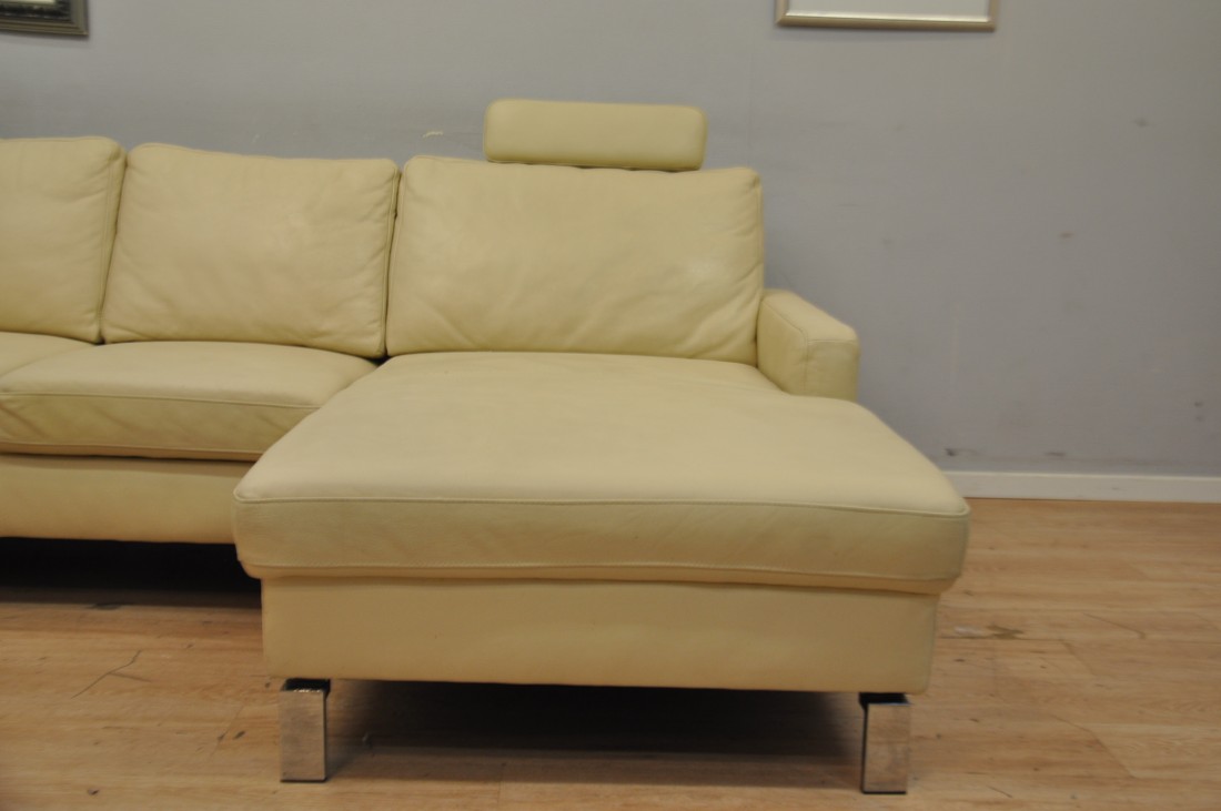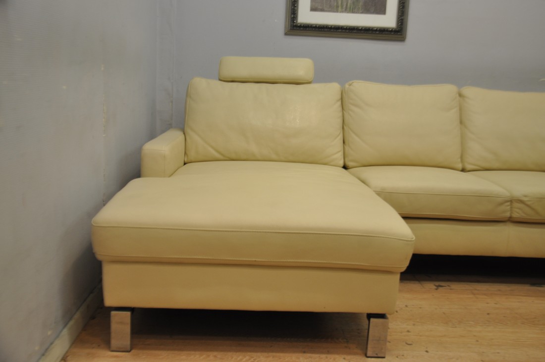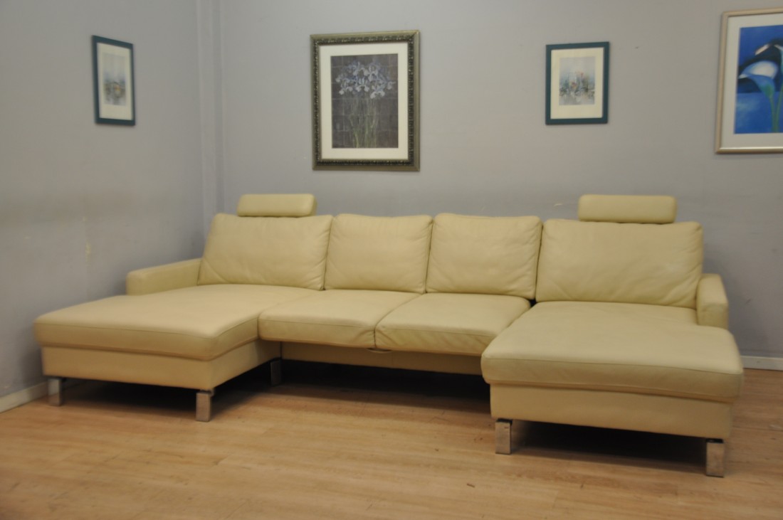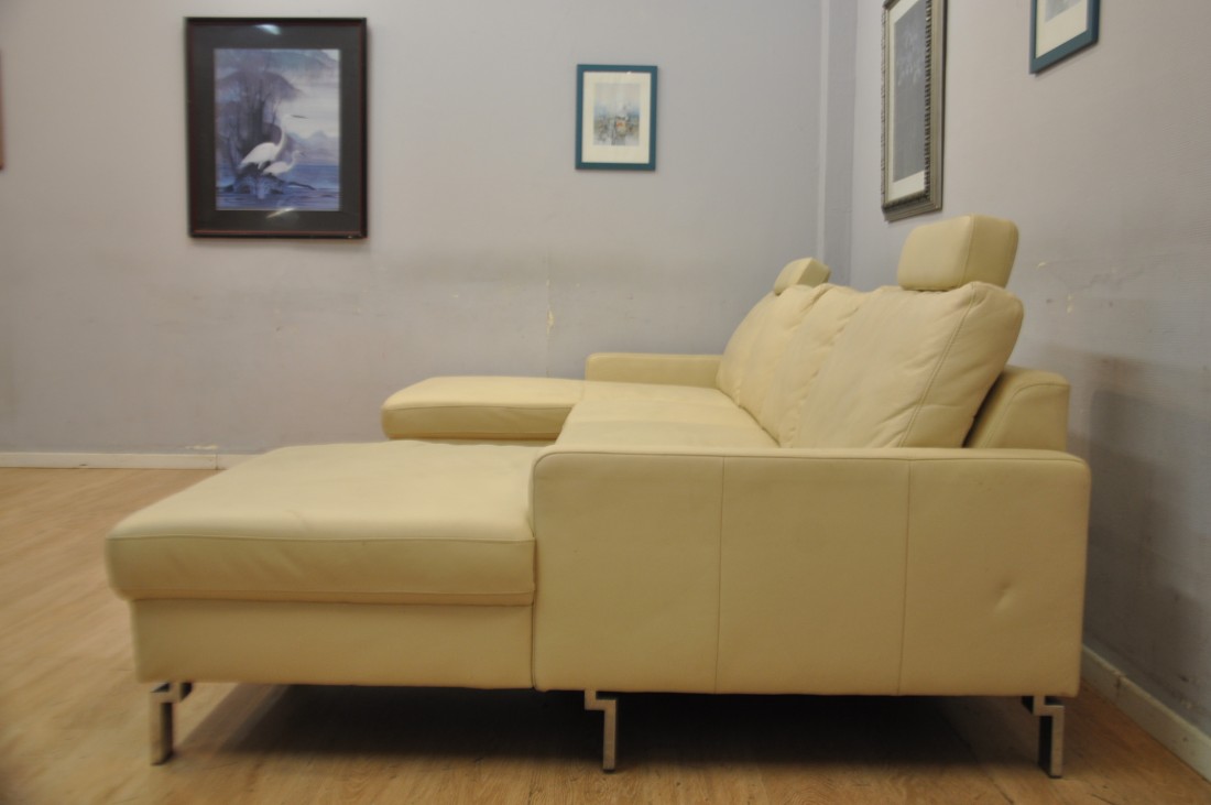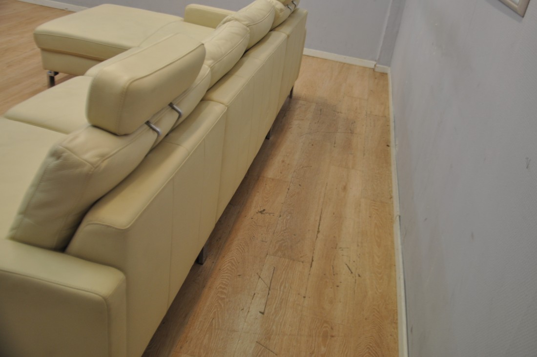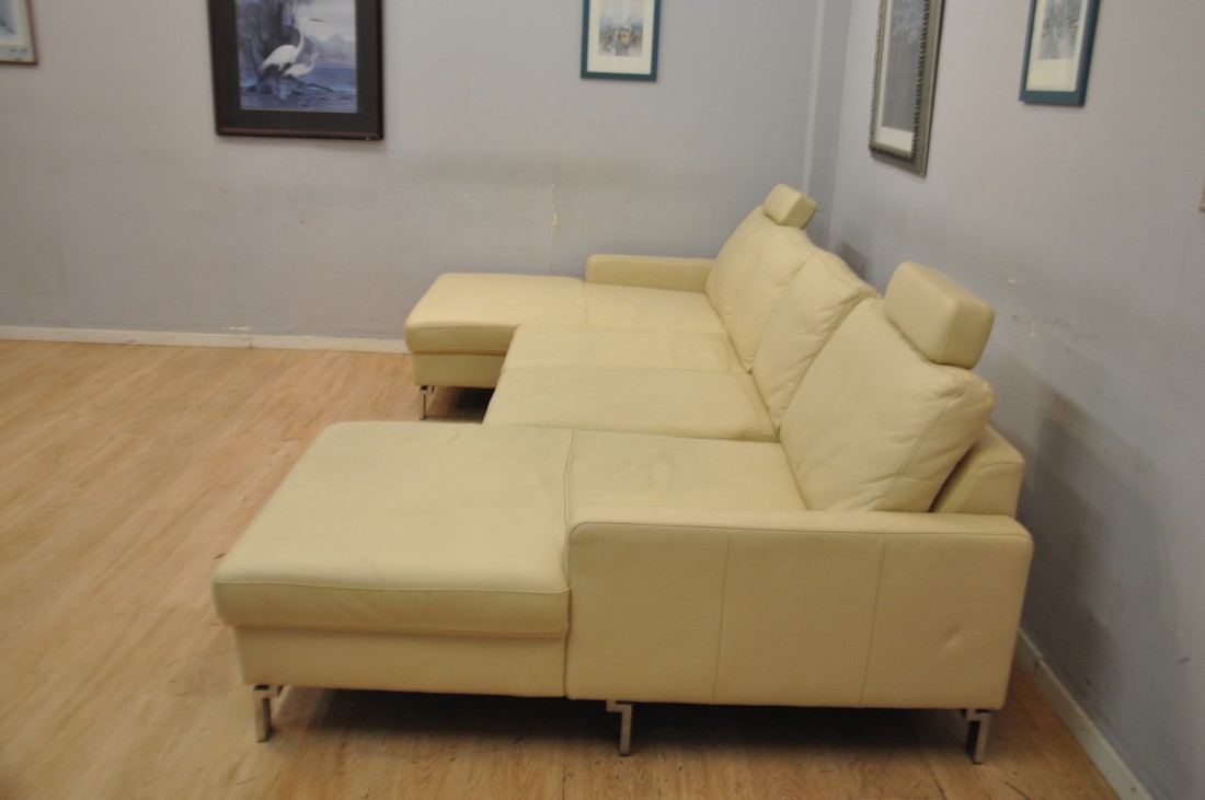 beau salon en vrai cuir de couleur beige