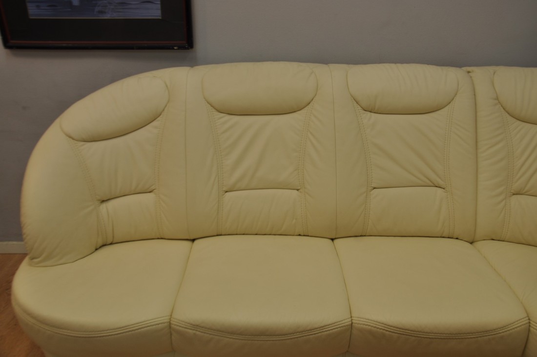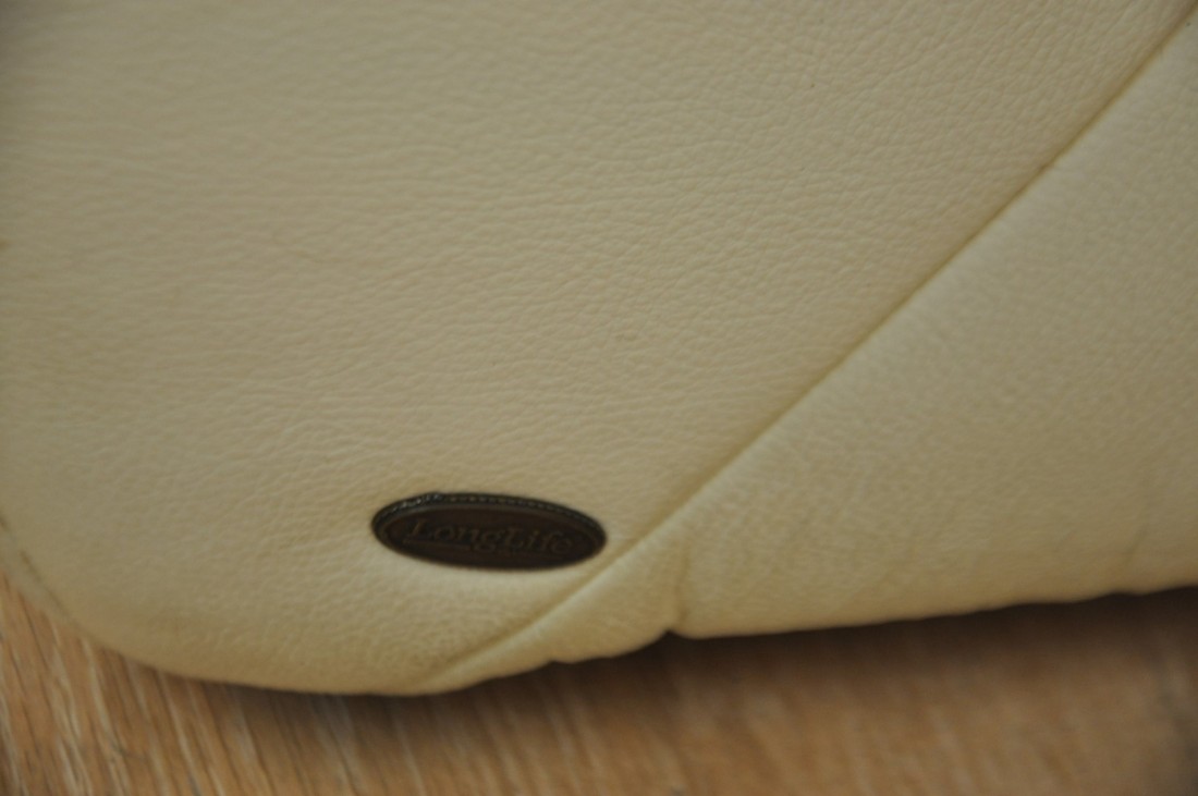 très beau salon en vrai cuir de couleur blanc cassé, il est beaucoup plus blanc que sur les photos