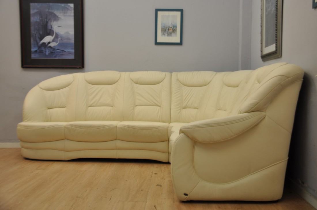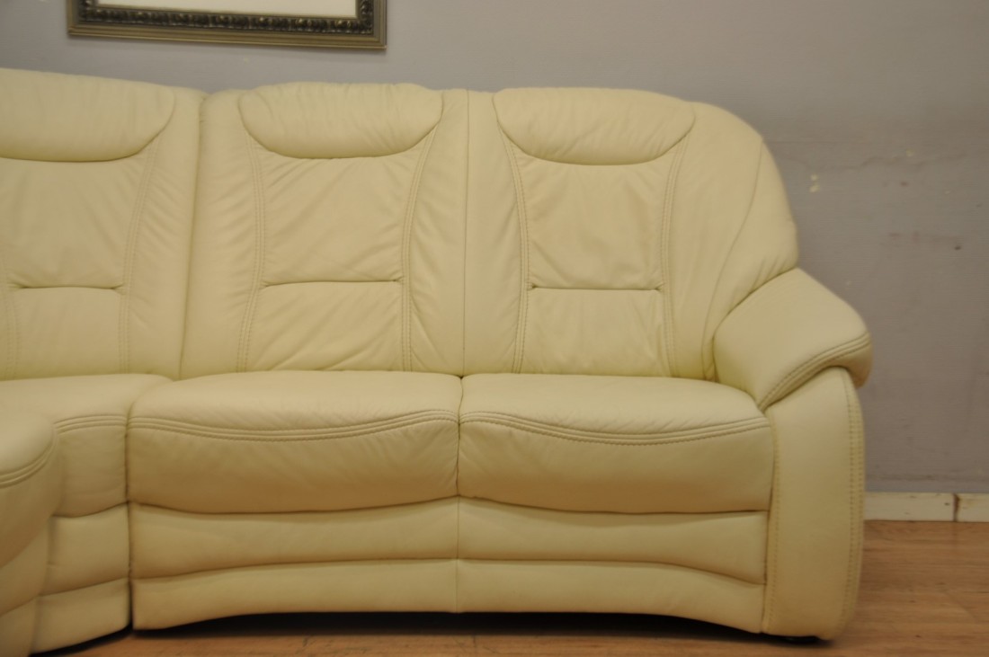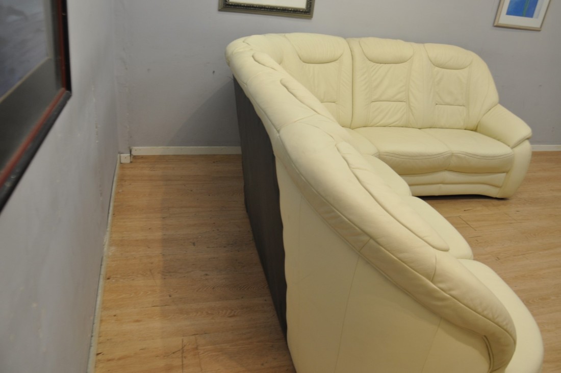 Très beau salon CUIR 265x235cm blanc cassé ! confort