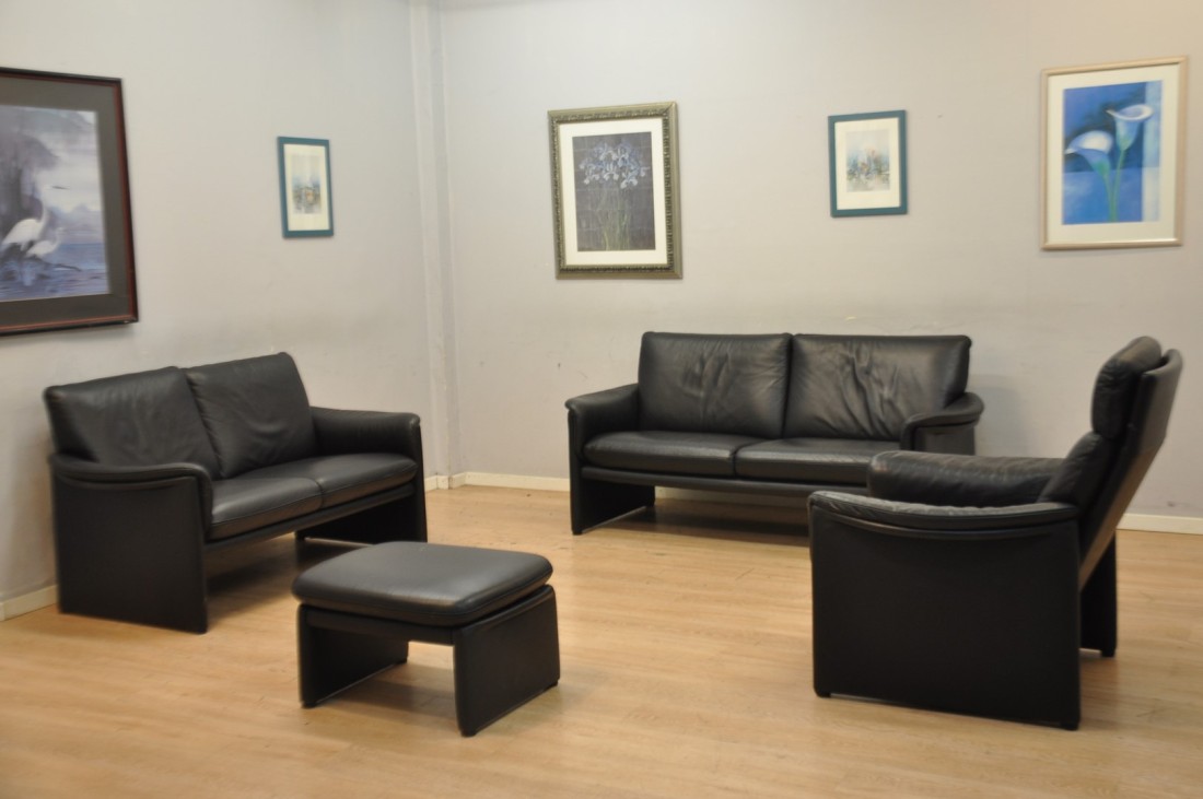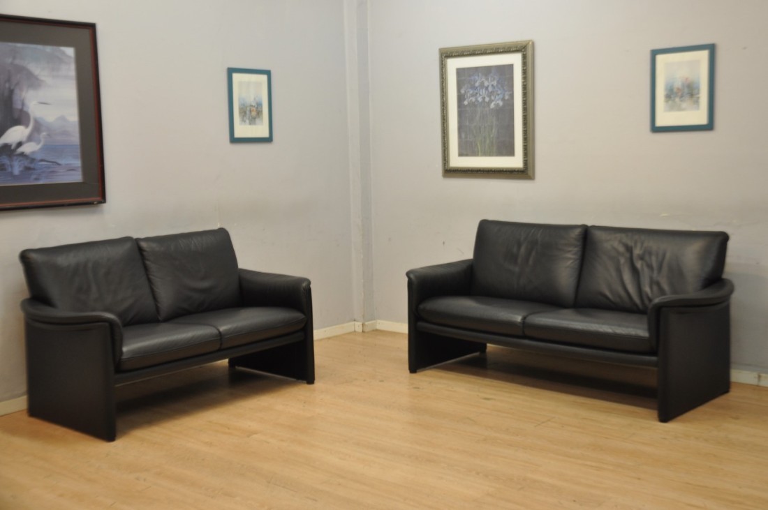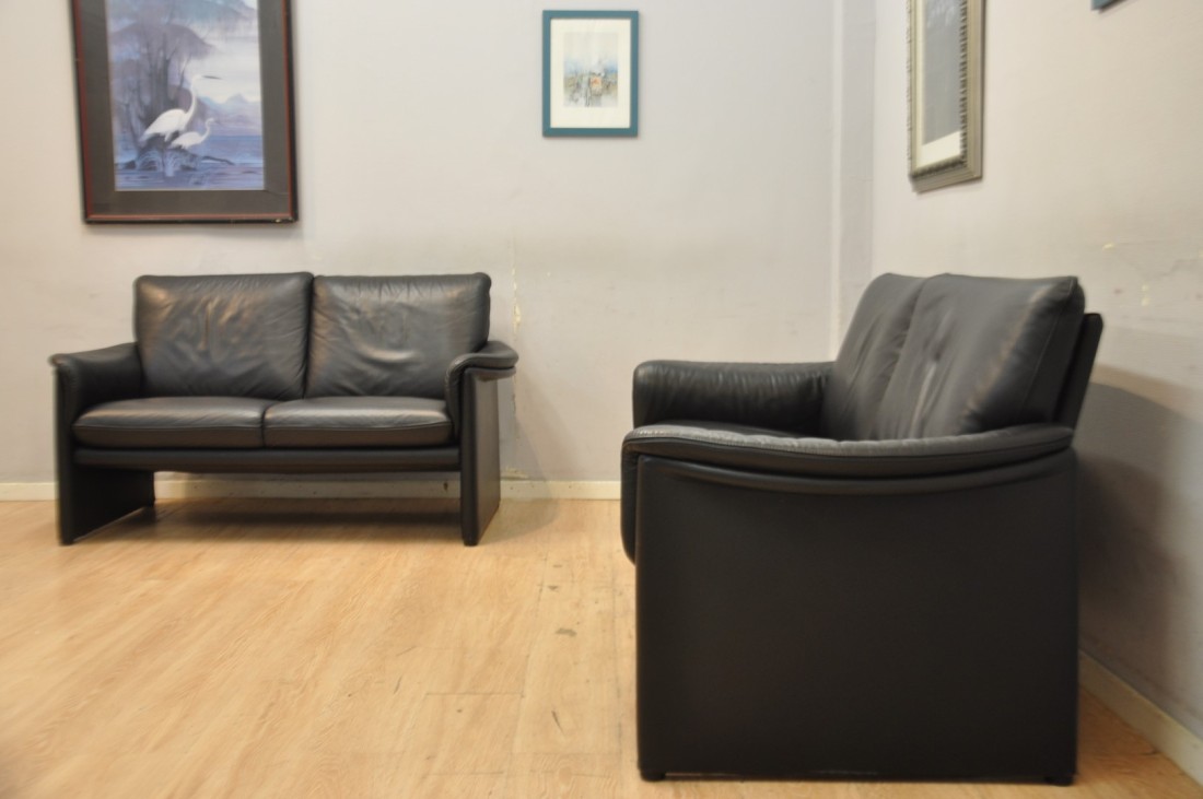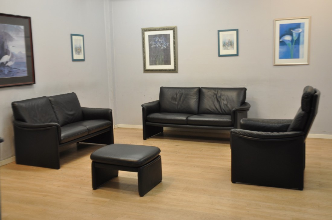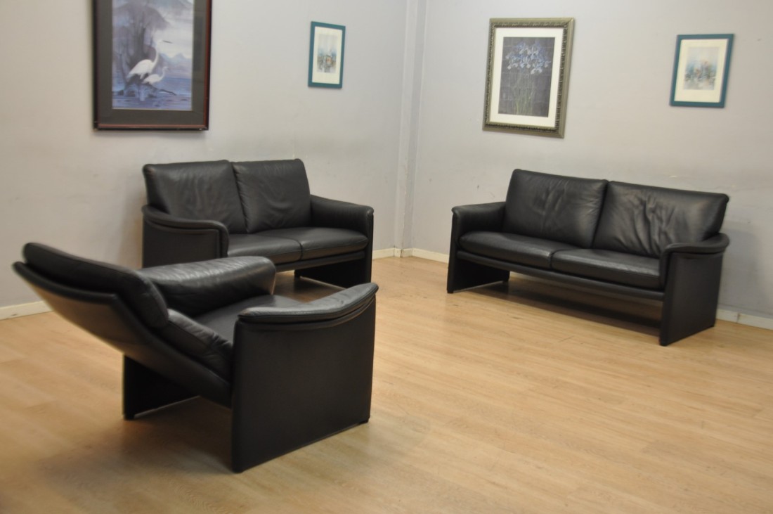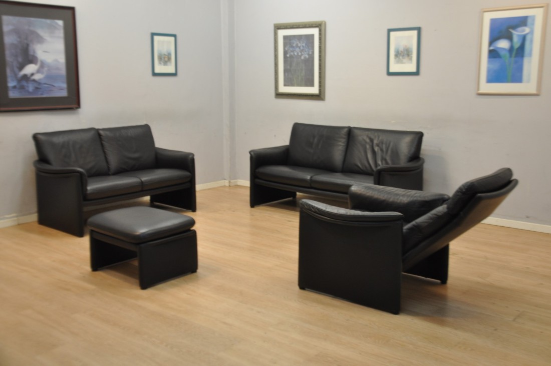 superbe salon en vrai cuir de couleur noir de style moderne actuel