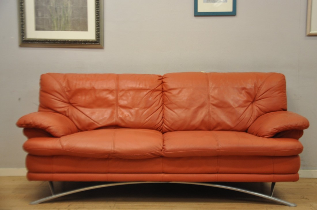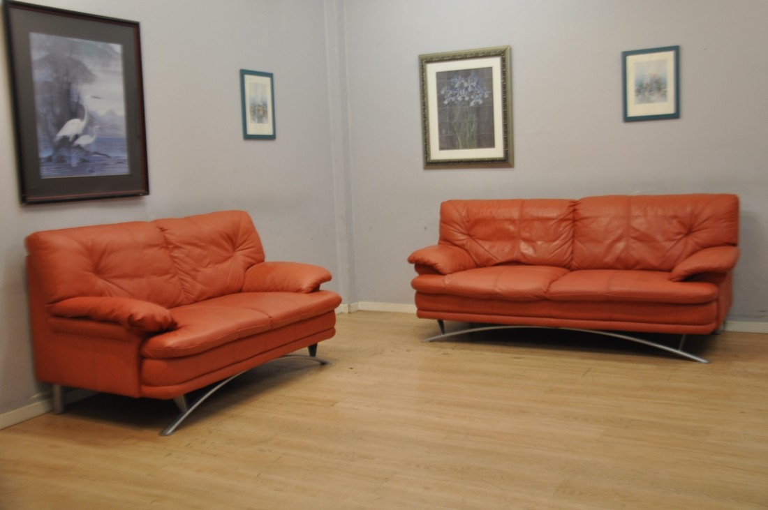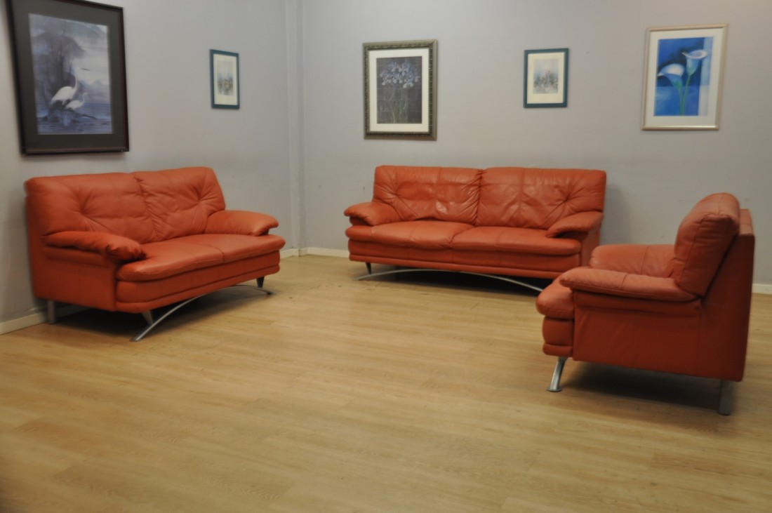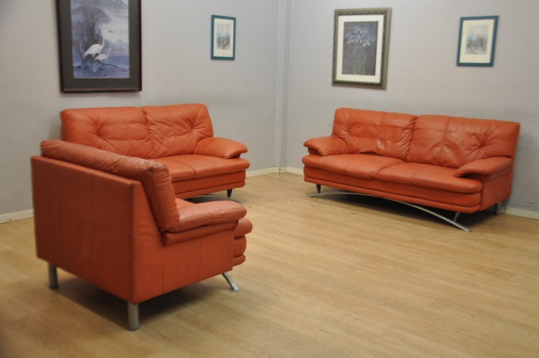 beau salon en vrai cuir de couleur terracotta