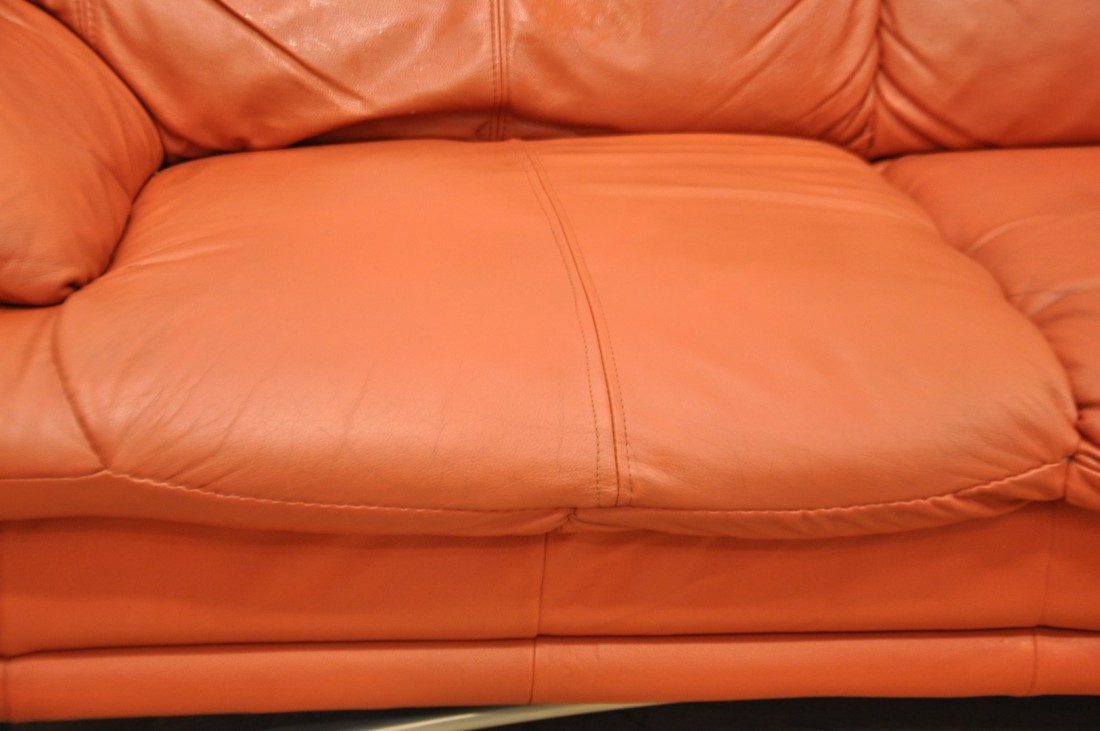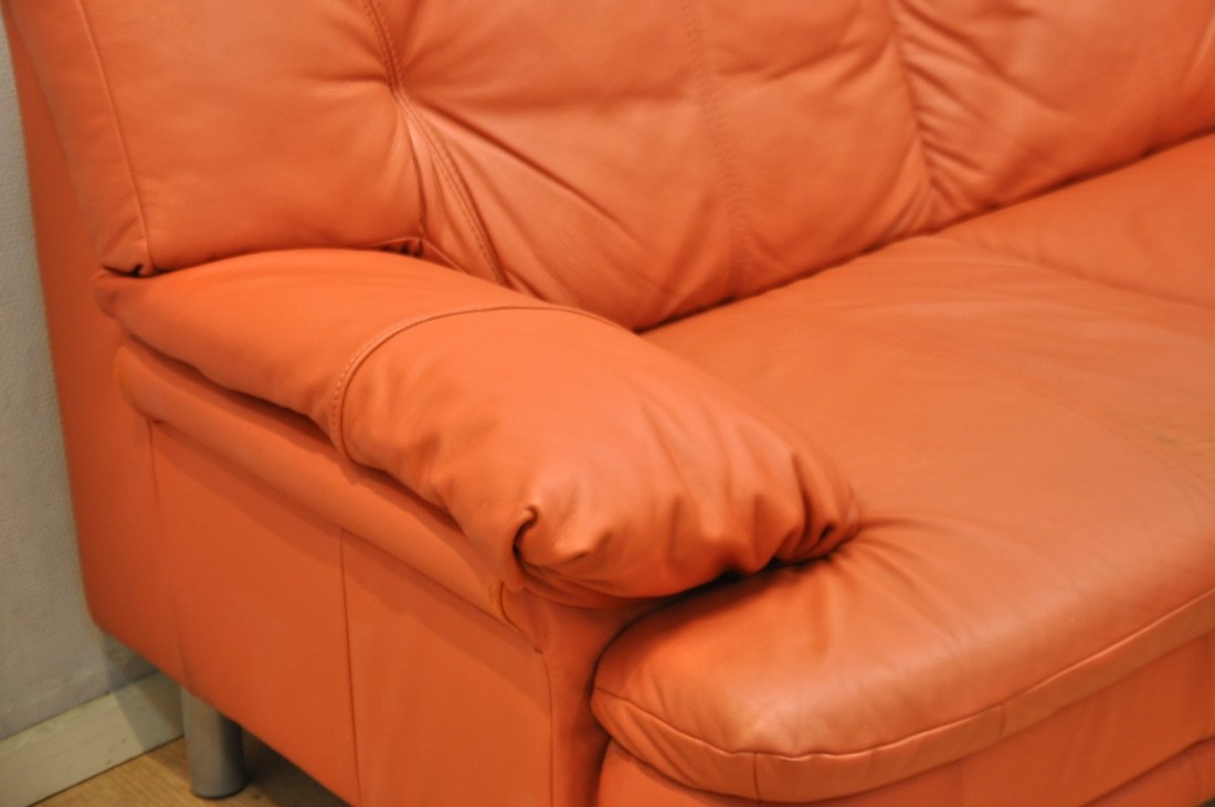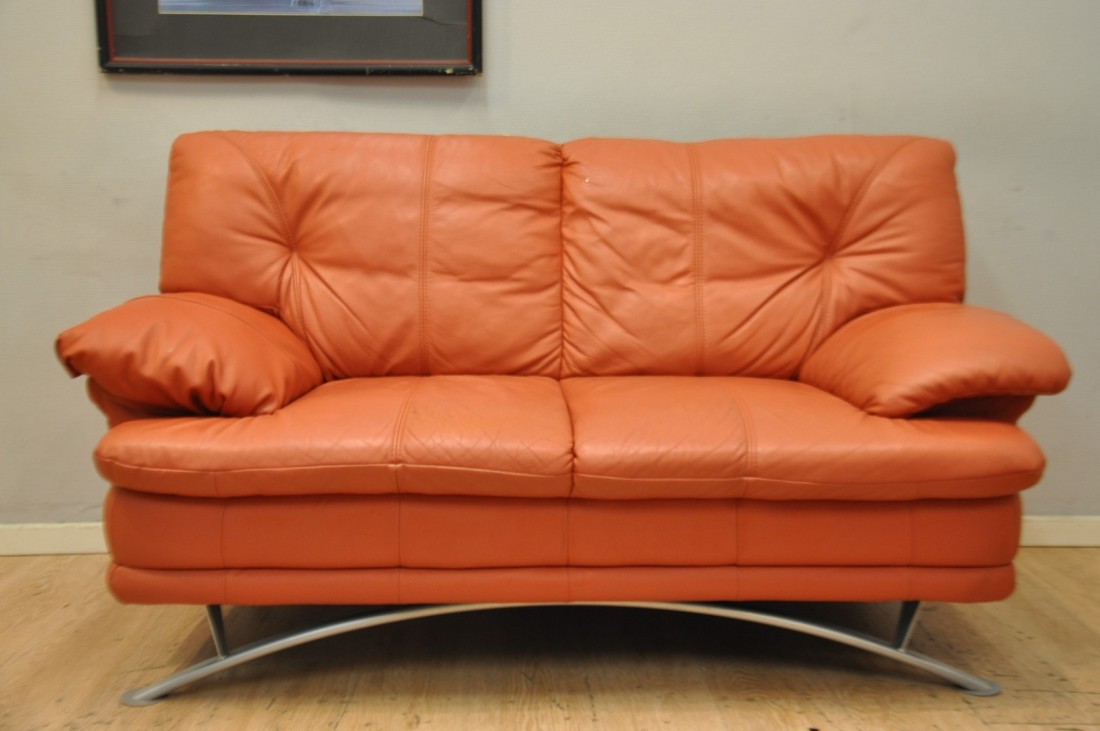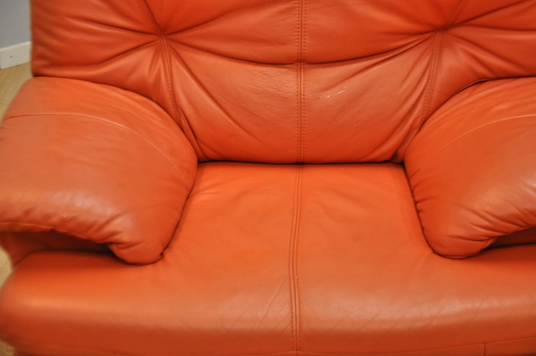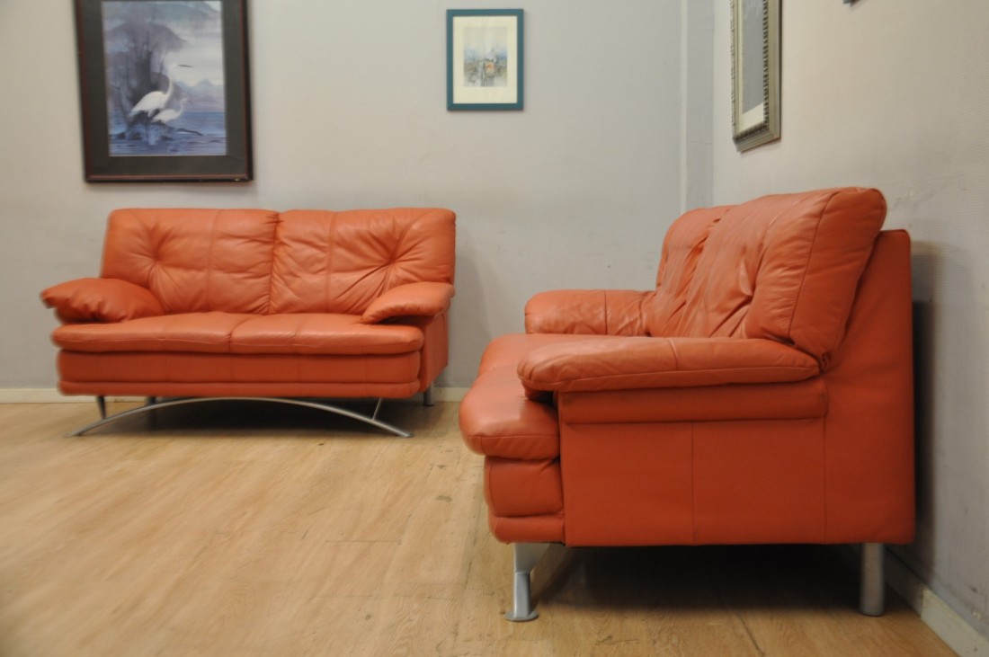 beau salon en vrai cuir de couleur terracotta