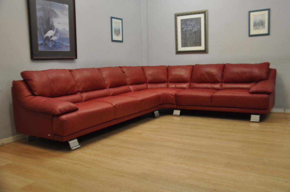 Très beau salon CUIR Italien 330x270cm Rouge moderne confort