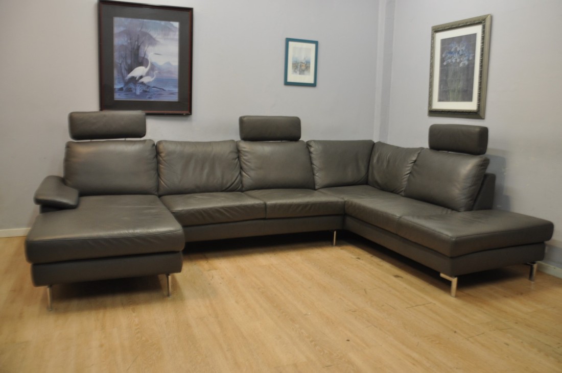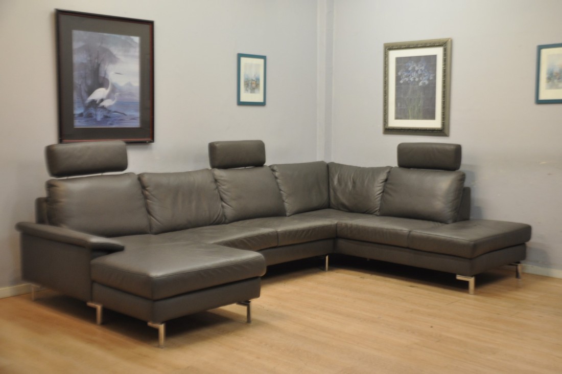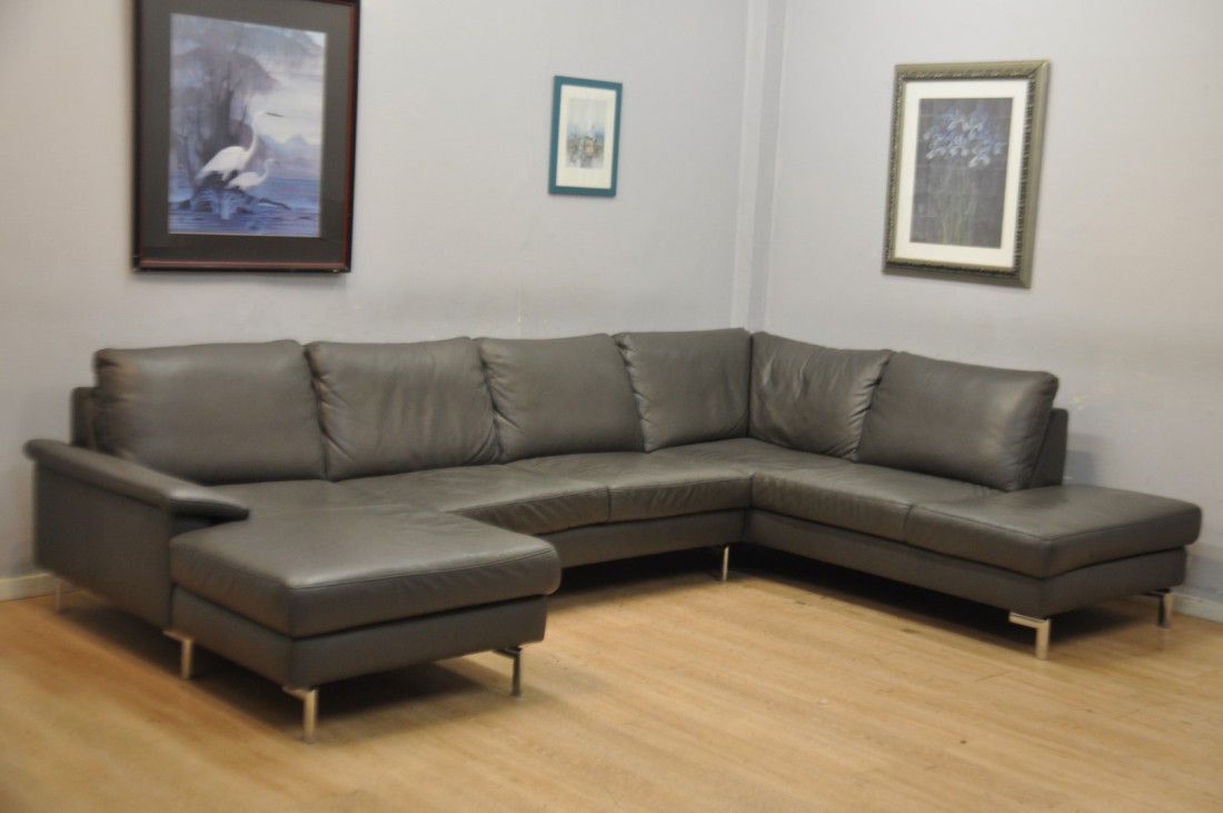 Superbe salon CUIR 155x330x215cm GRIS carré moderne