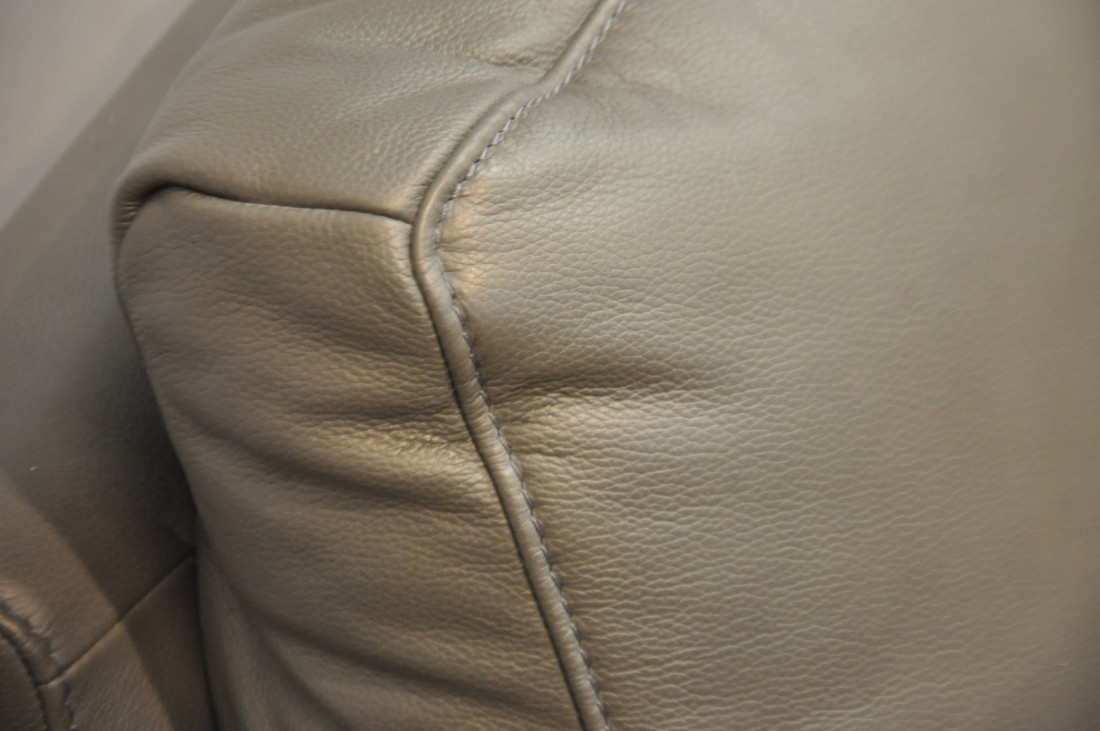 superbe salon en vrai cuir de couleur gris foncé un peu taupe