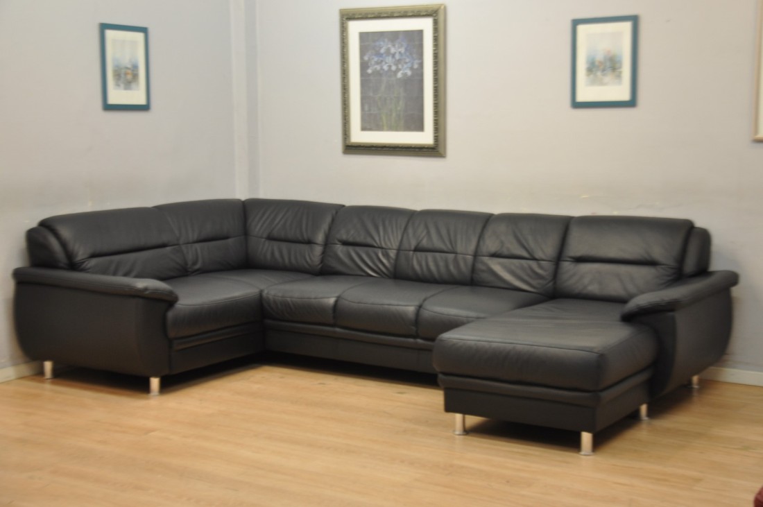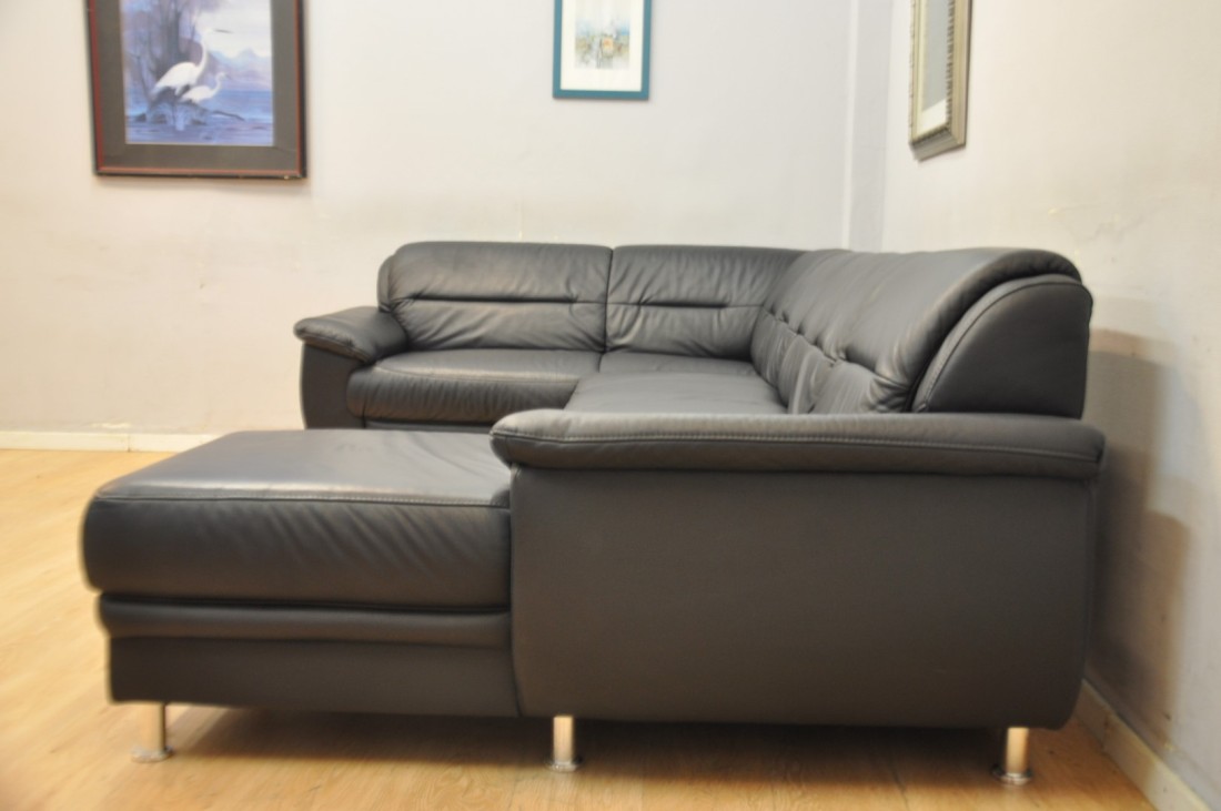 superbe salon en vrai cuir de couleur noir de style carré moderne
