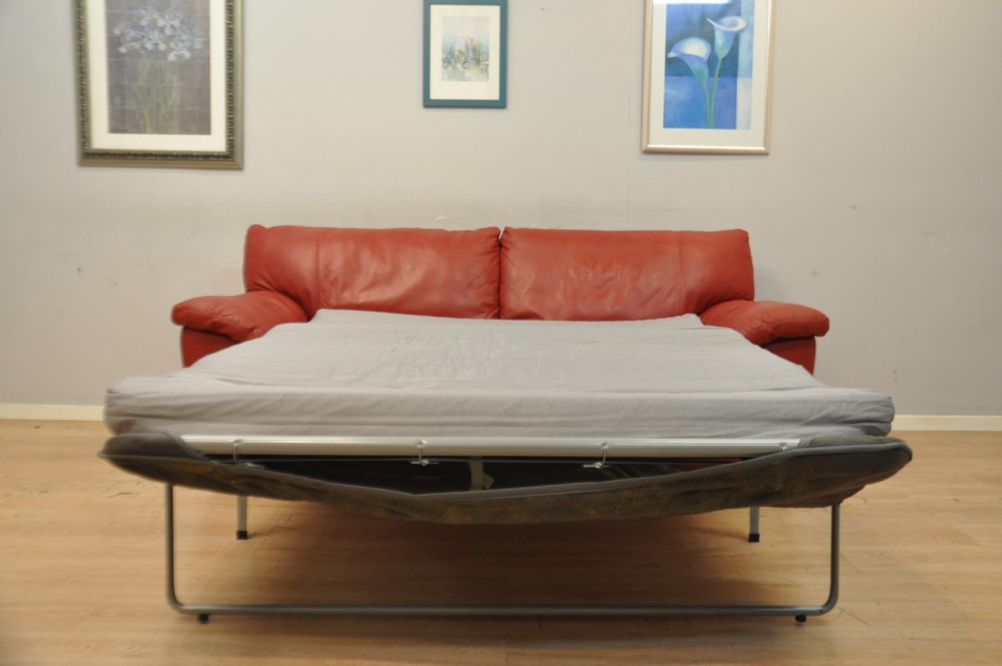 Superbe canapé-Lit CUIR rouge confort 205cm