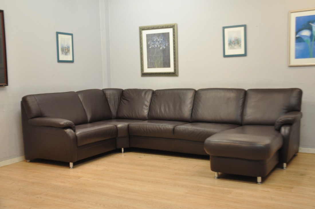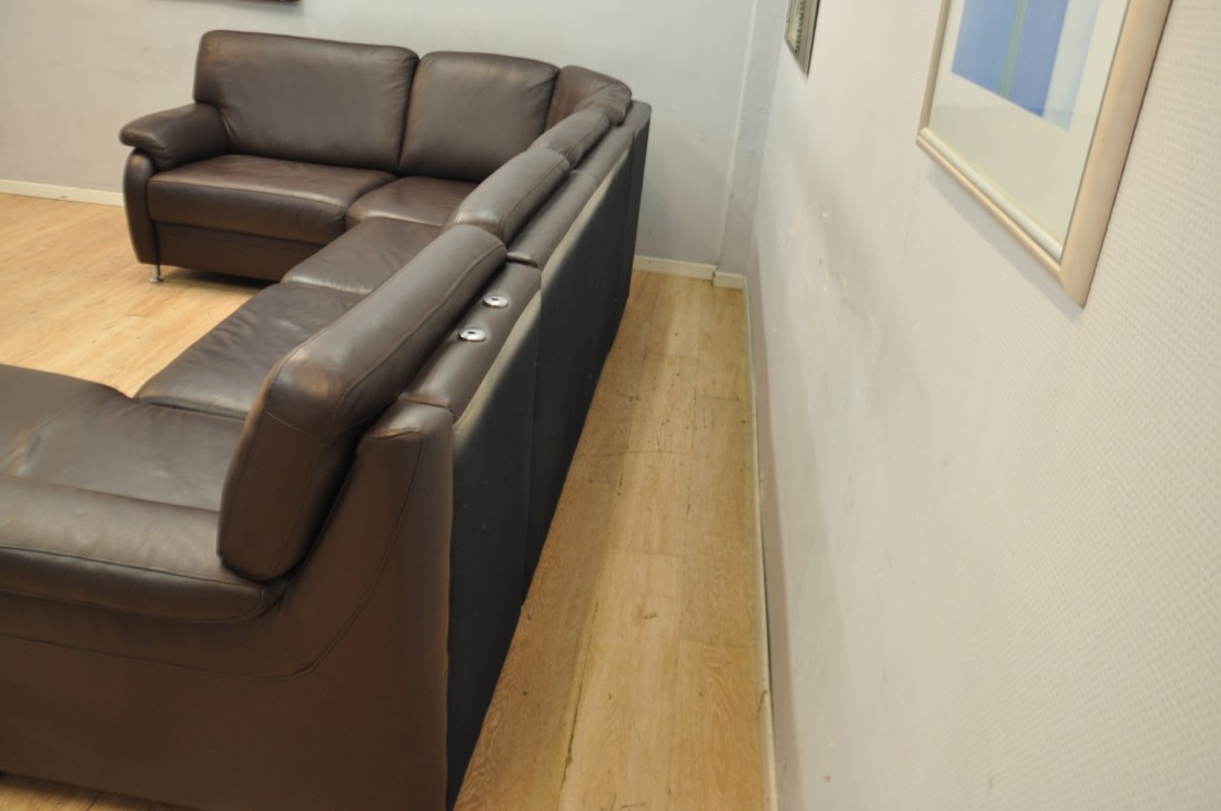 superbe salon en vrai cuir de couleur brun foncé