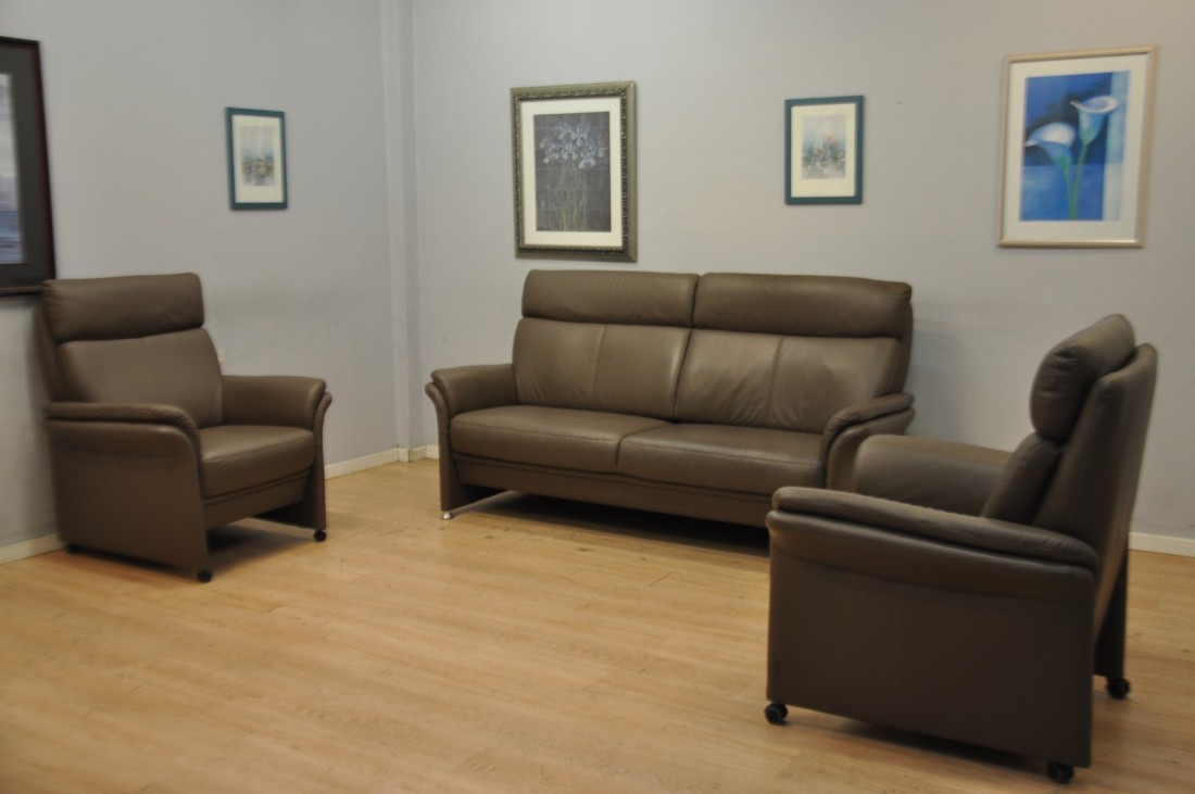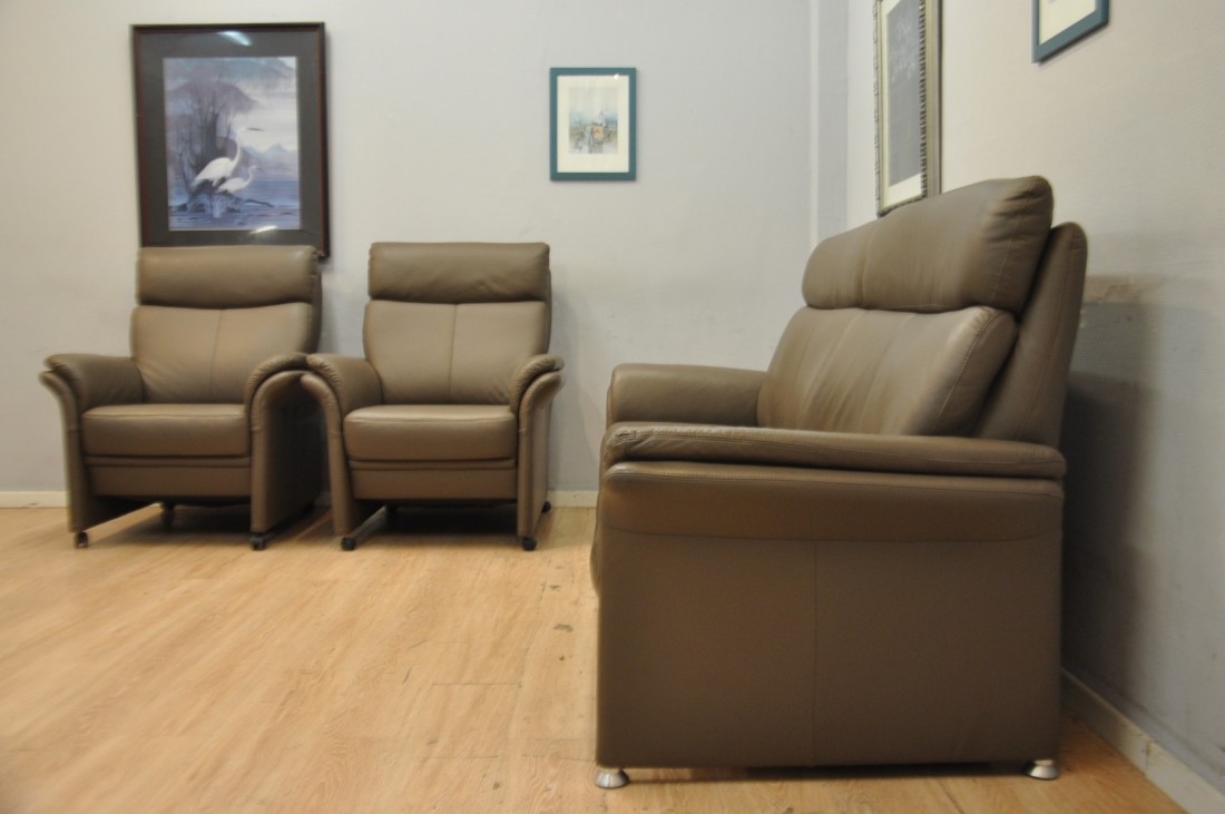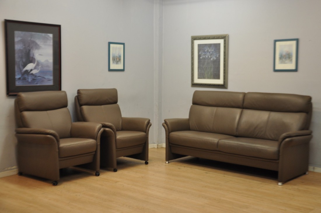splendide salon en vrai cuir de top qualité de couleur brun taupe