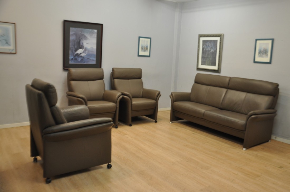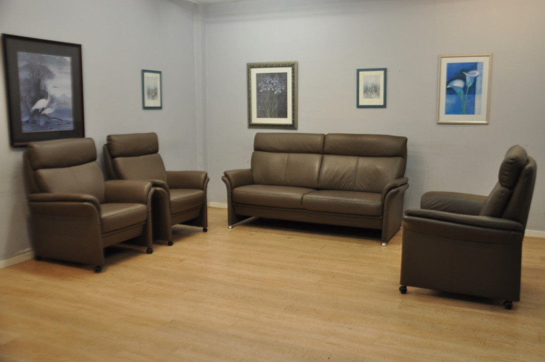 Splendide salon CUIR 3+1+1+1 Brun taupe