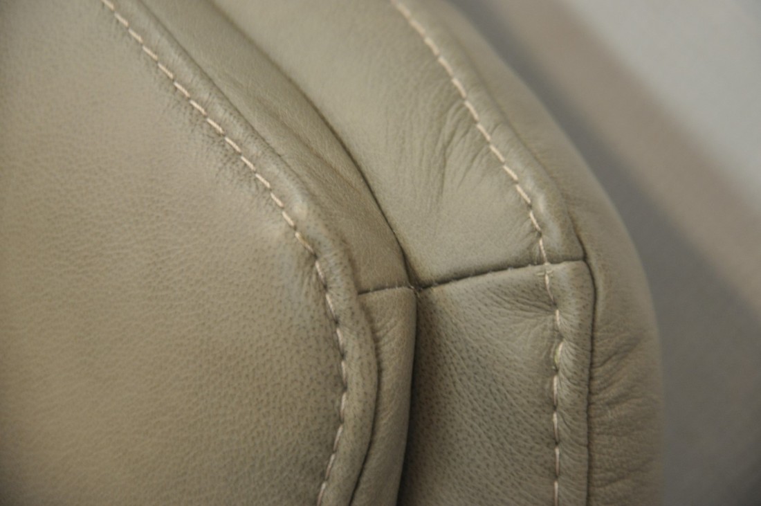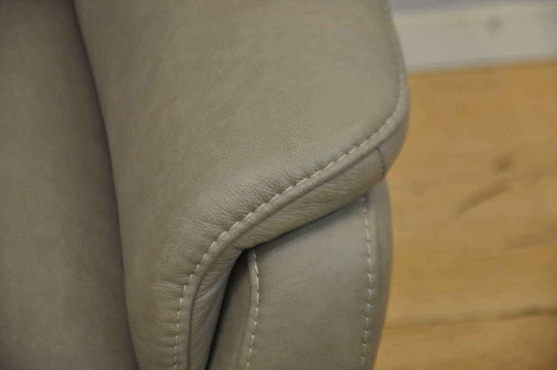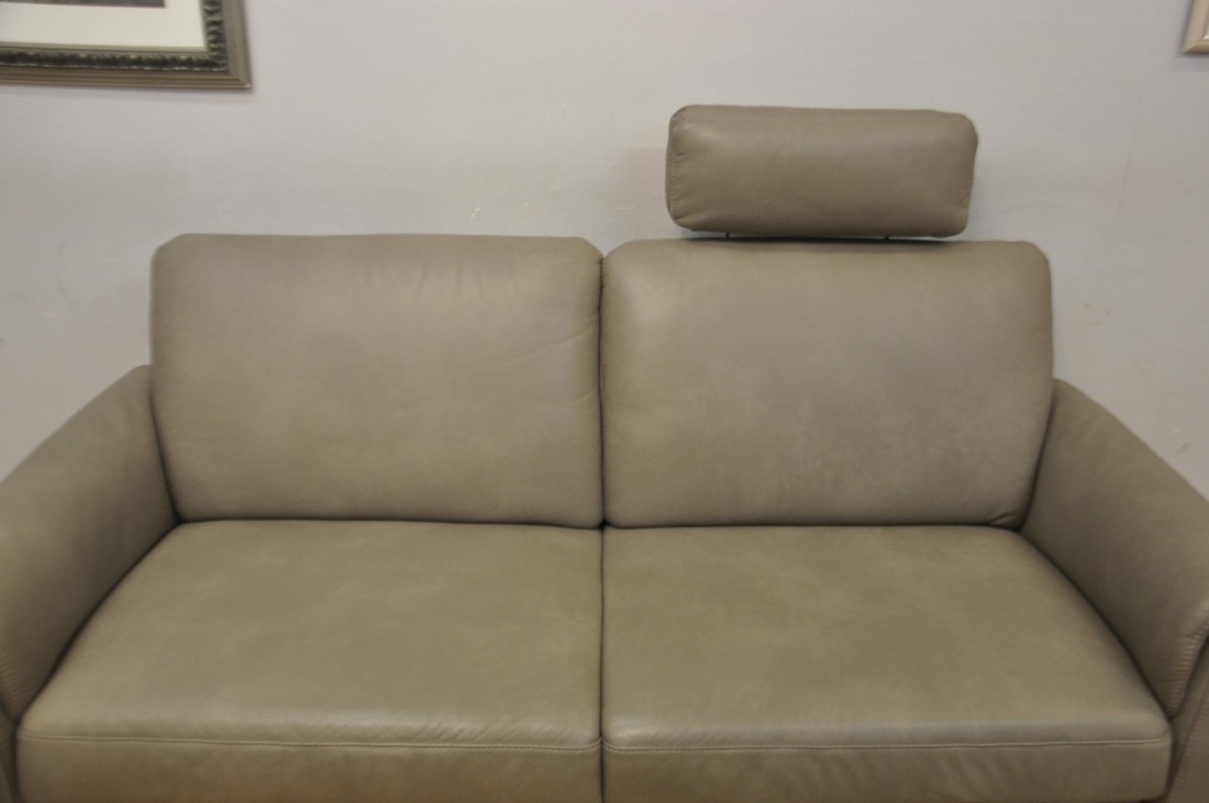 magnifique petit salon en vrai cuir de couleur gris taupe