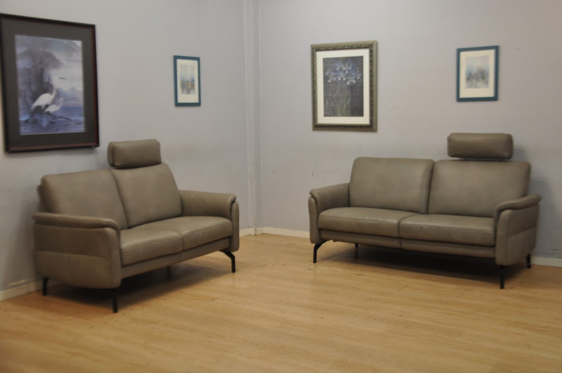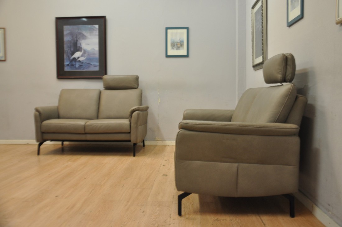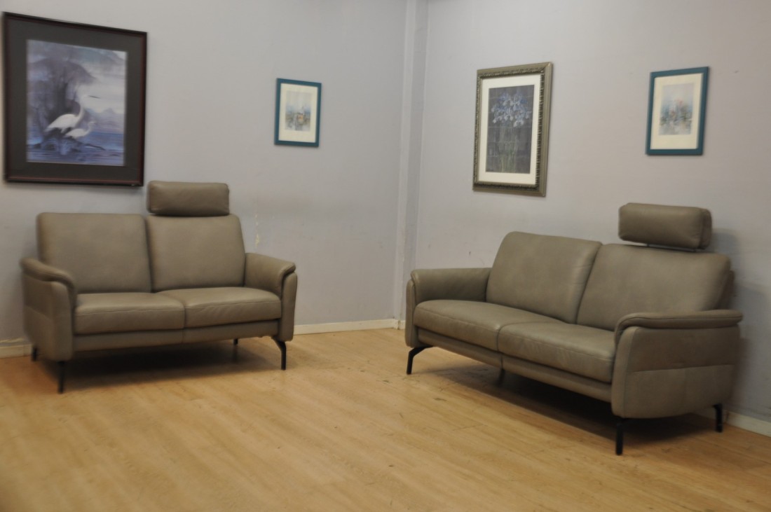 Magnifique petit salon CUIR 3+2 moderne gris taupe
