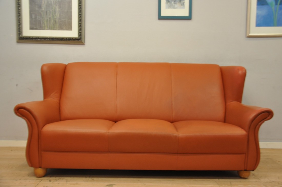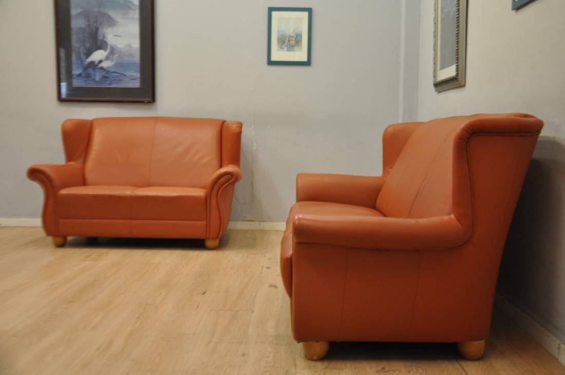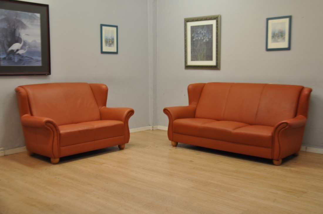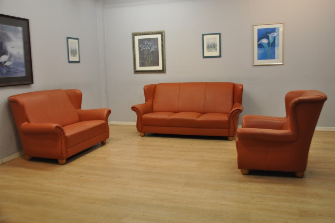 Très beau salon en vrai cuir de couleur terracotta