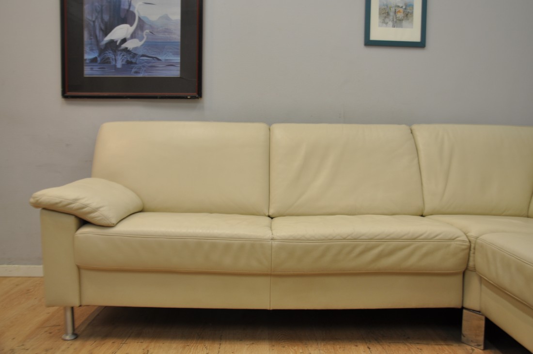 très beau salon en vrai cuir de couleur beige clair (plus clair que sur les photos)