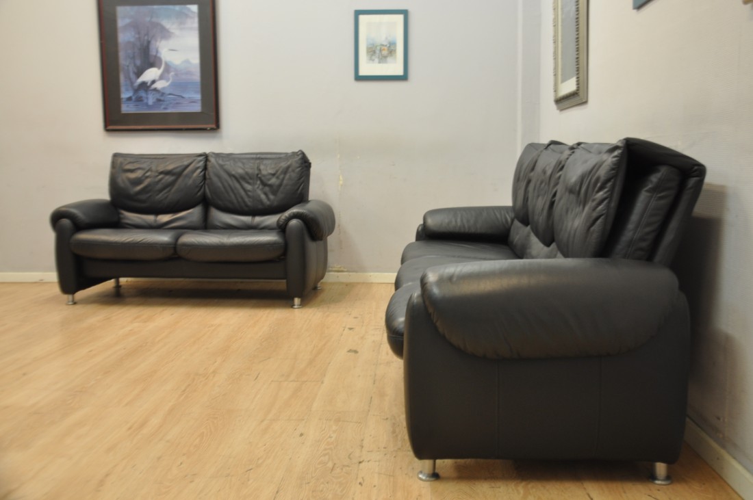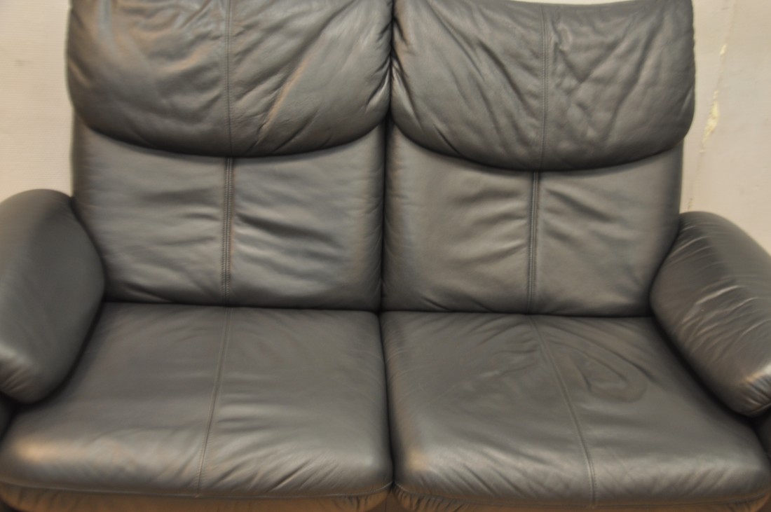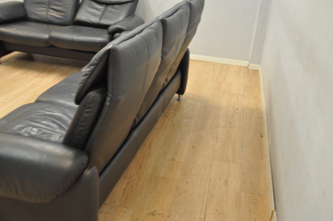 Très beau salon en vrai cuir de couleur gris foncé bleuté ?