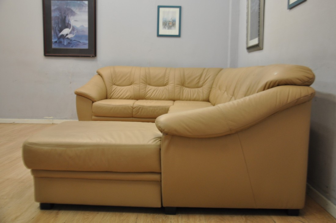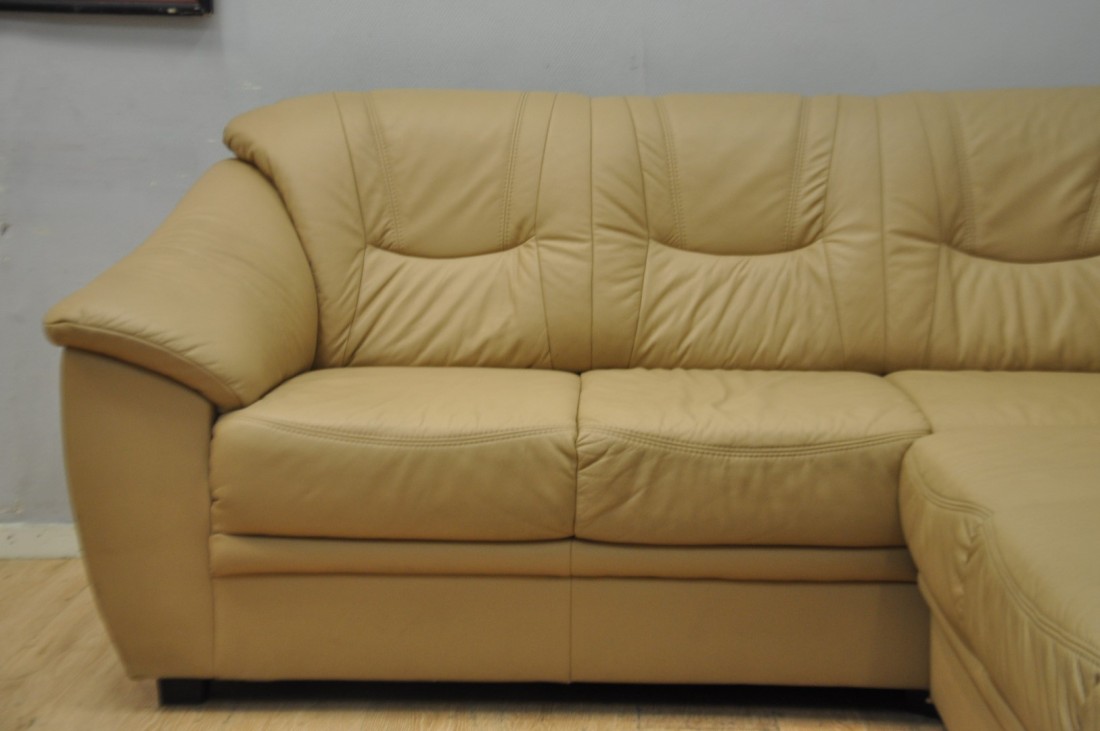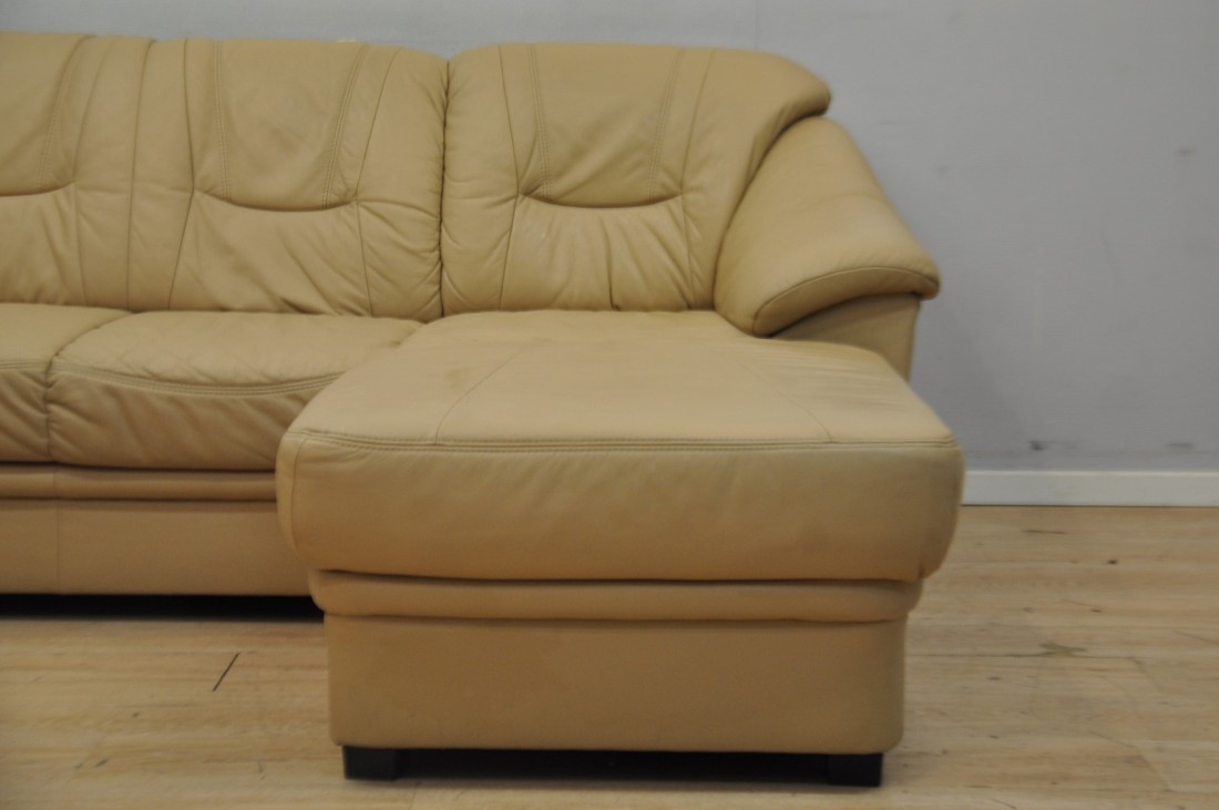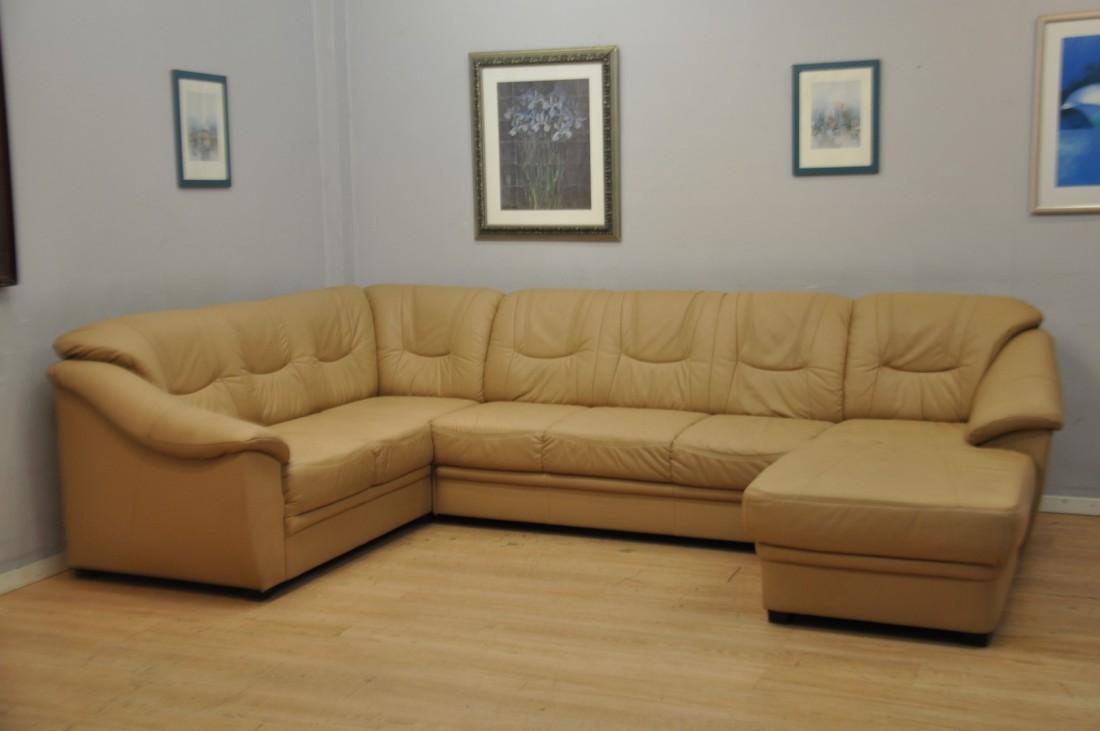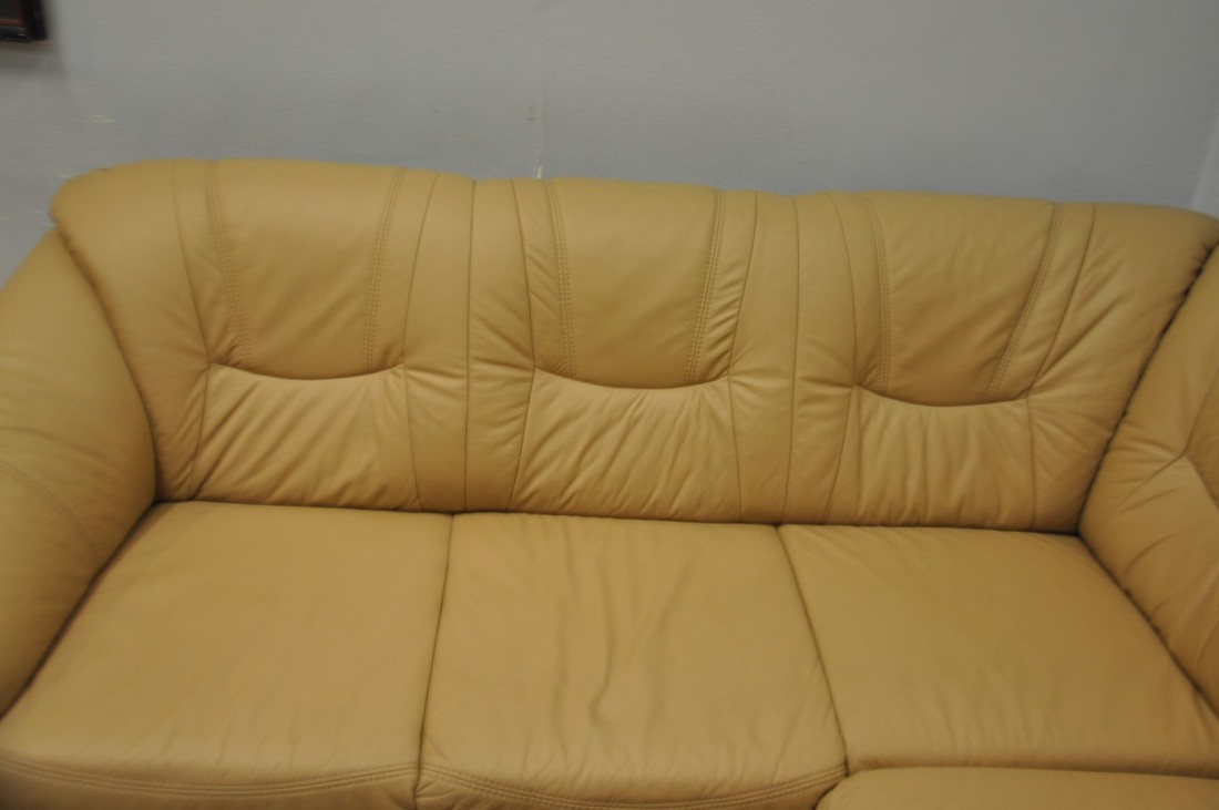 superbe salon en vrai cuir de couleur brun clair moka