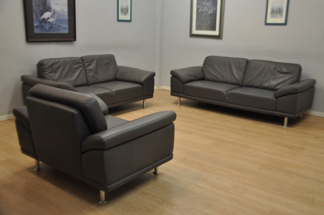 Très beau salon CUIR 3+2+1 moderne Gris