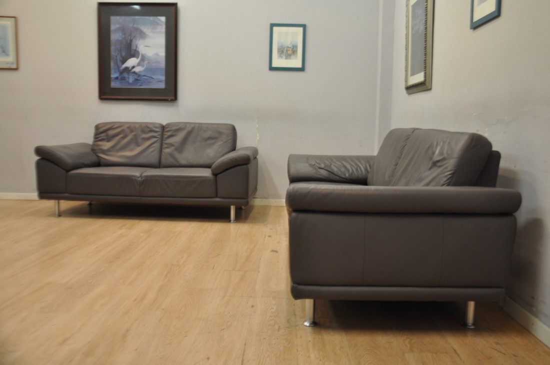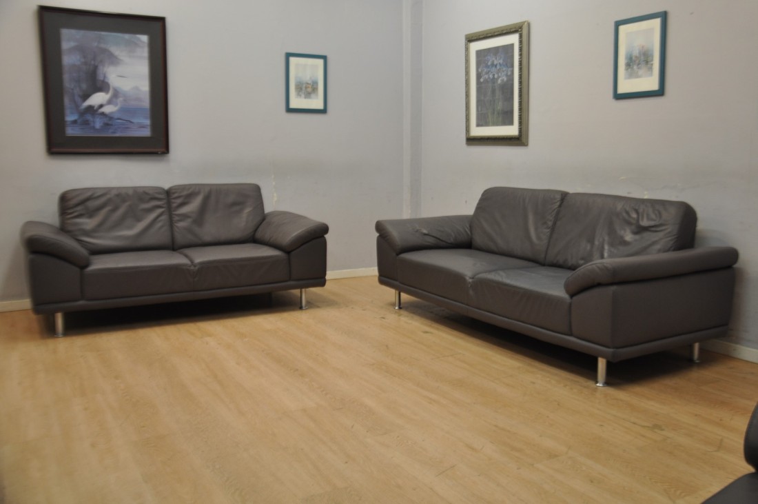 Très beau salon en vrai cuir de couleur gris