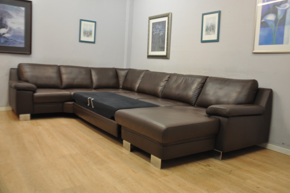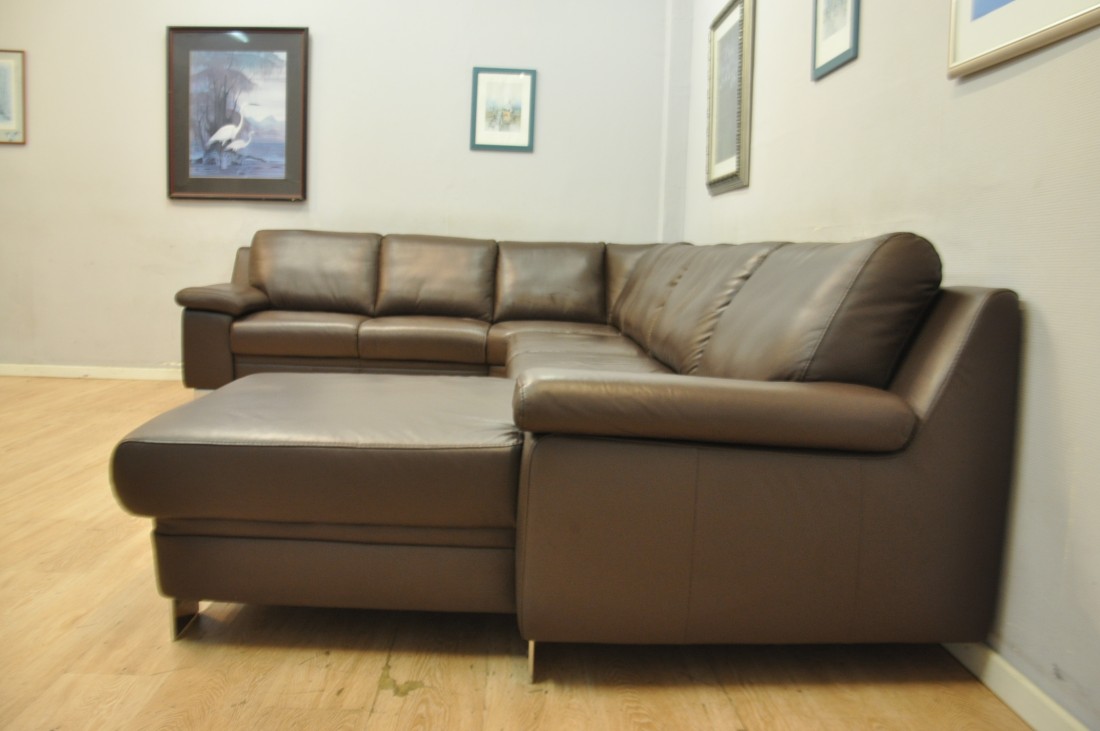 splendide salon en vrai cuir de couleur brun foncé
