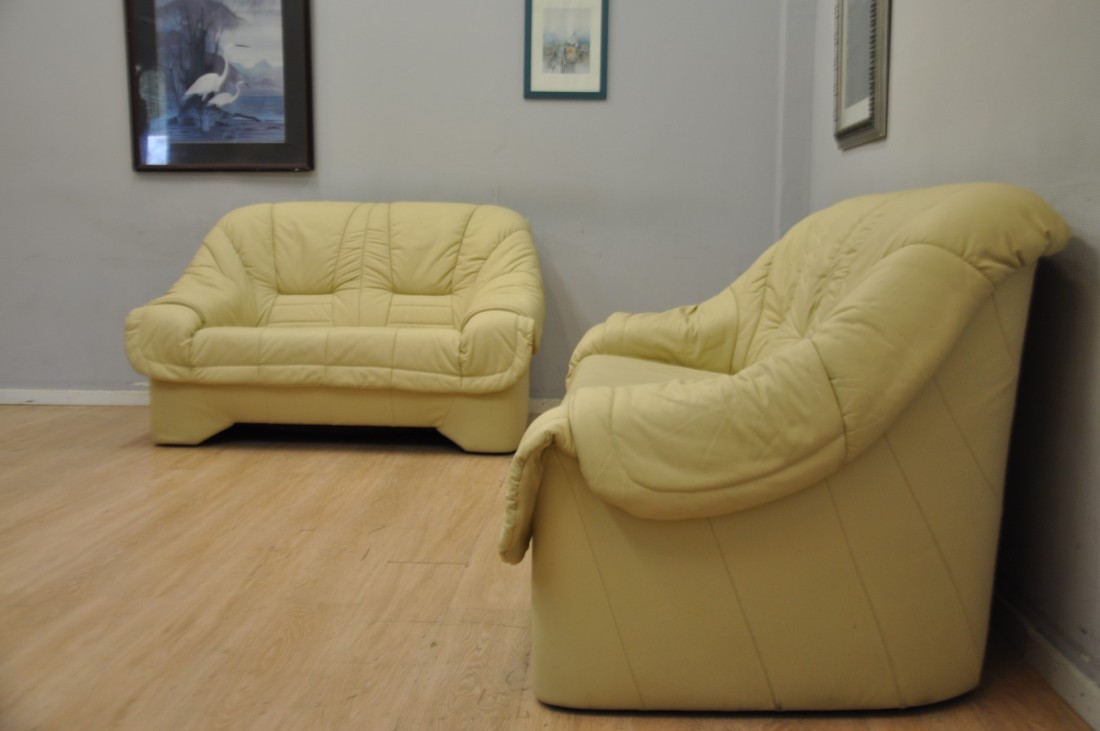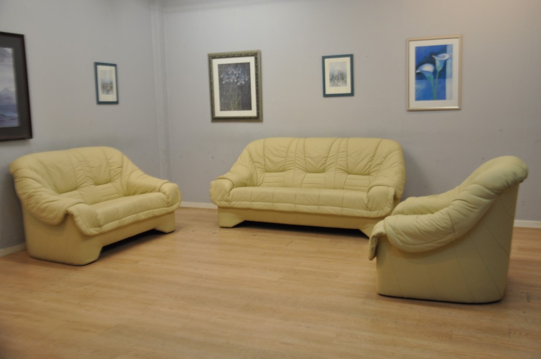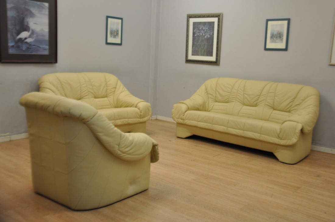 superbe salon en vrai cuir de couleur beige clair (un peu plus clair que sur les photos)