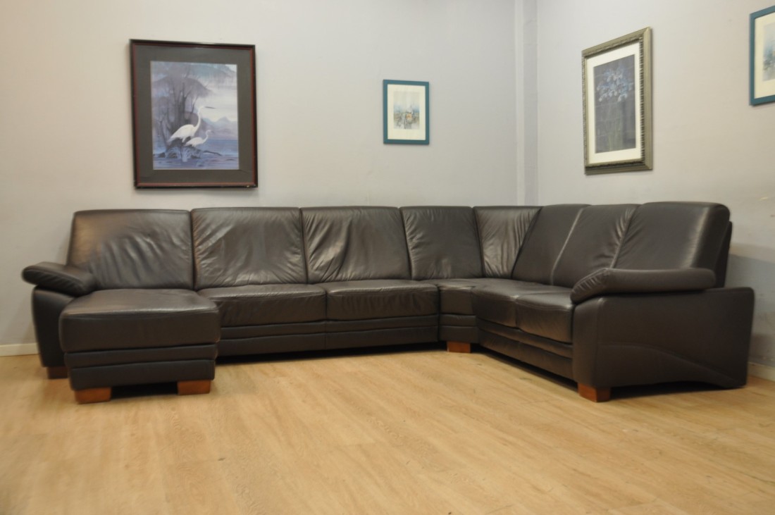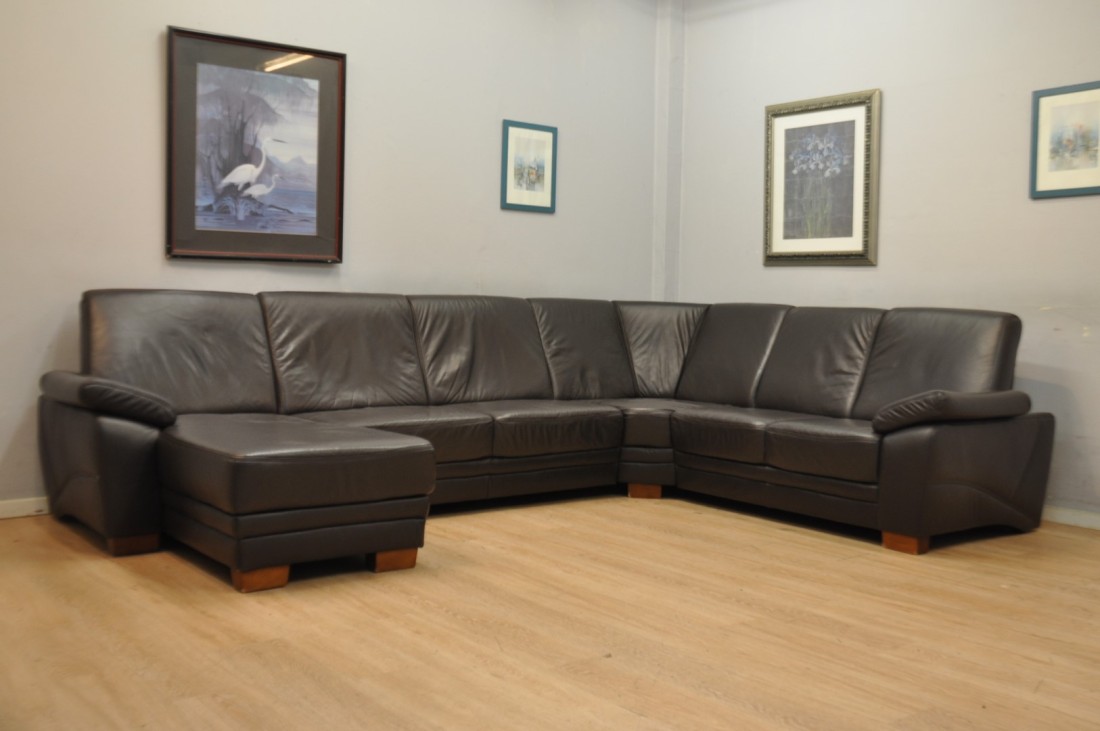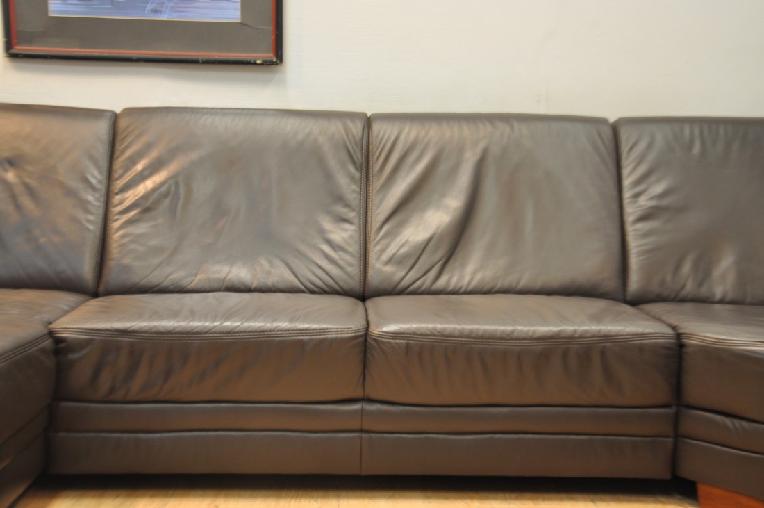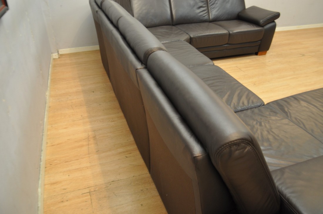 superbe grand salon en vrai cuir de couleur brun foncé