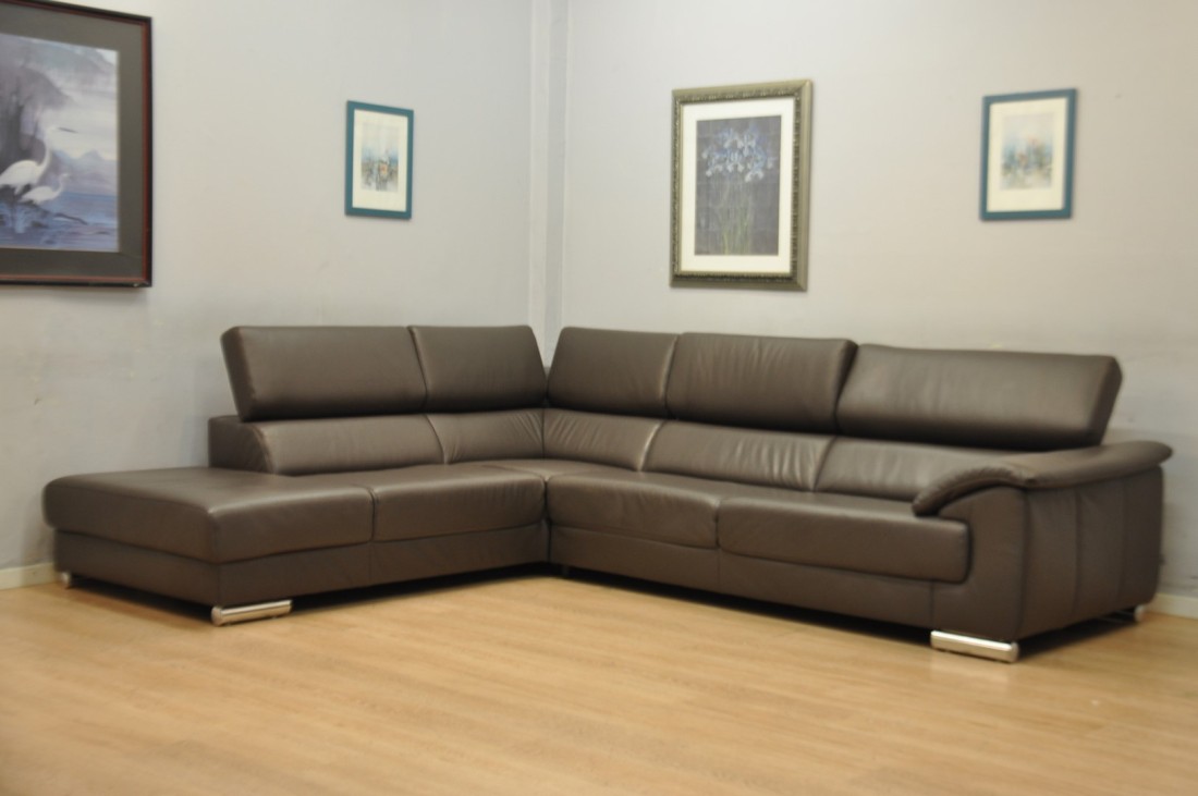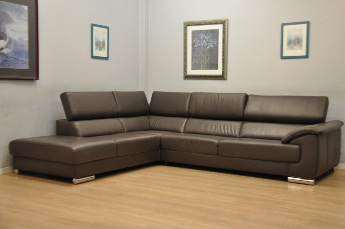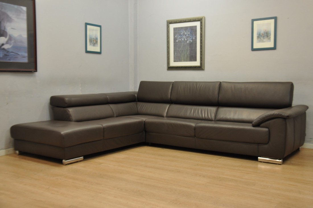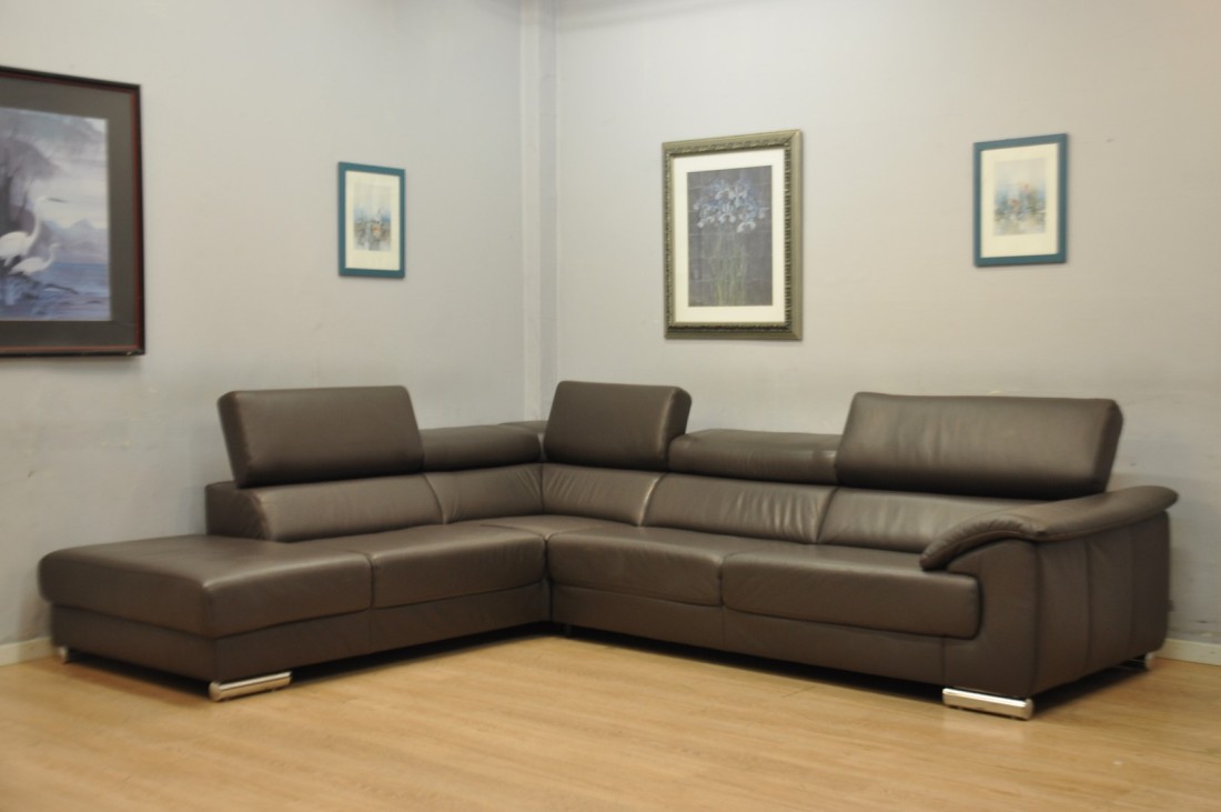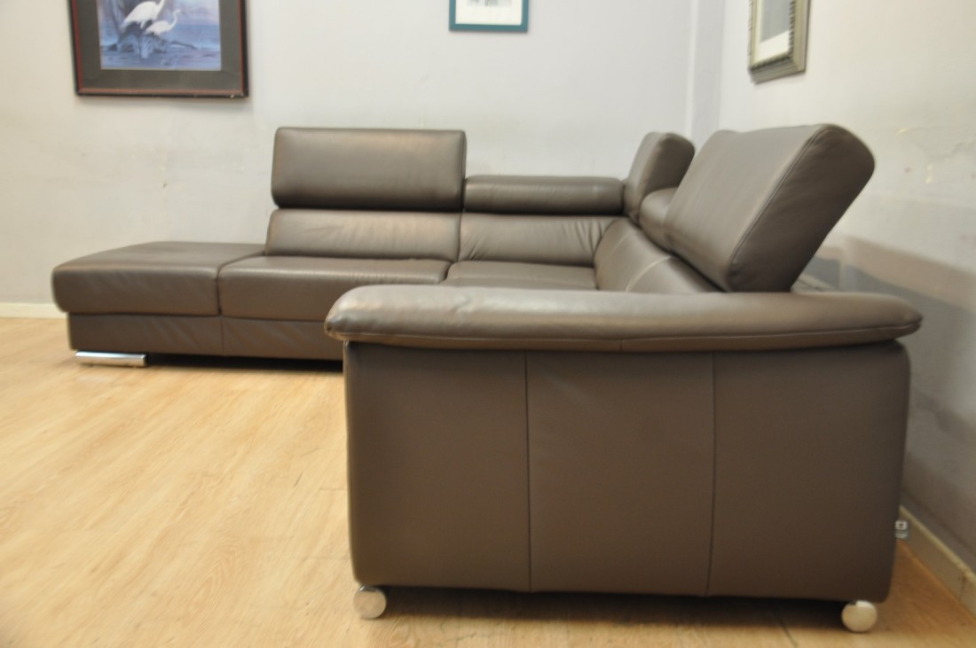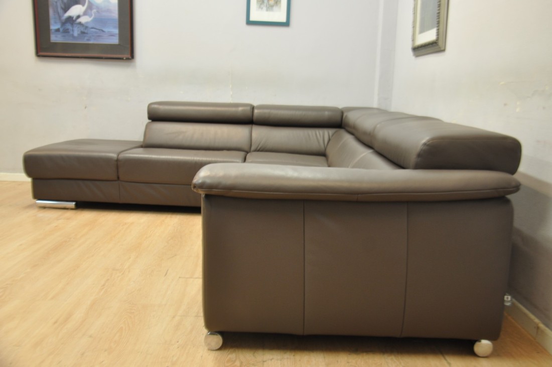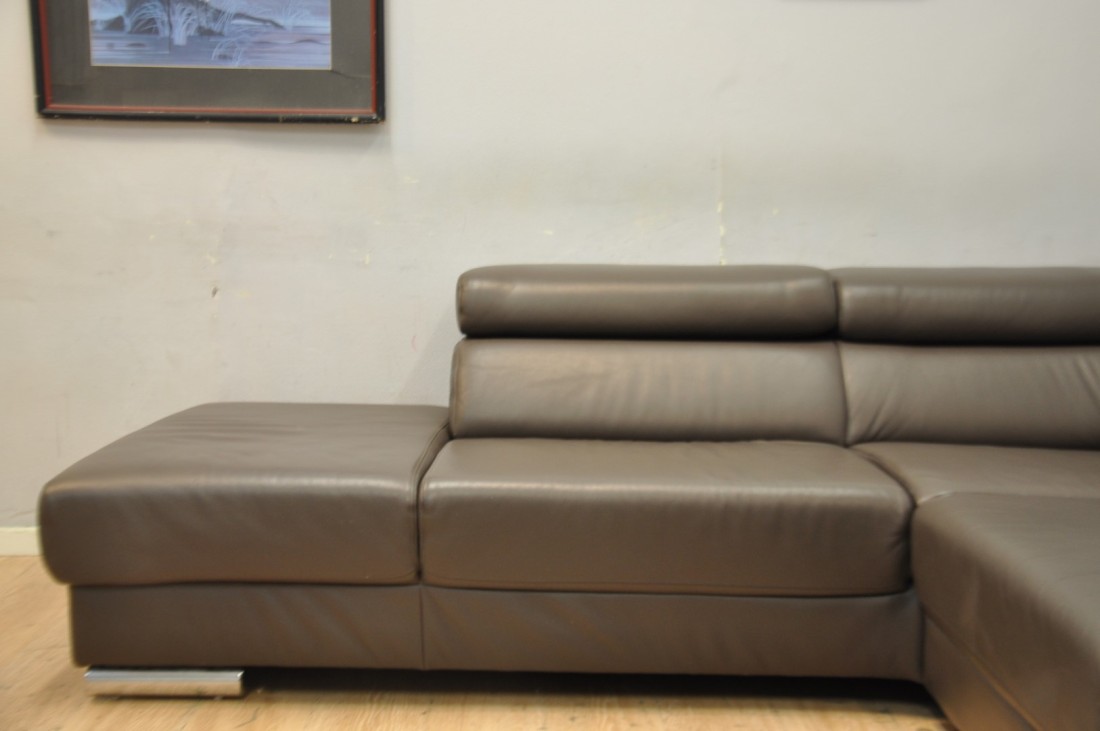 magnifique salon en vrai cuir hatu de gamme de couleur brun/gris