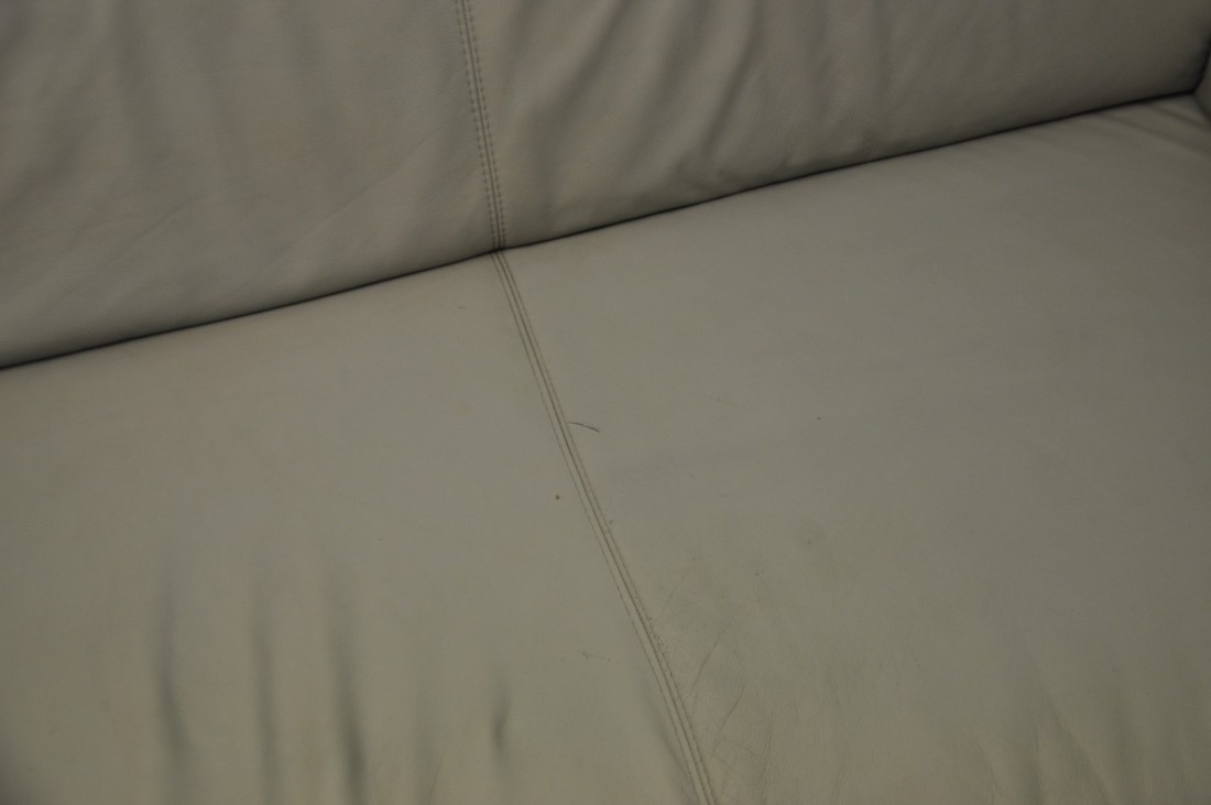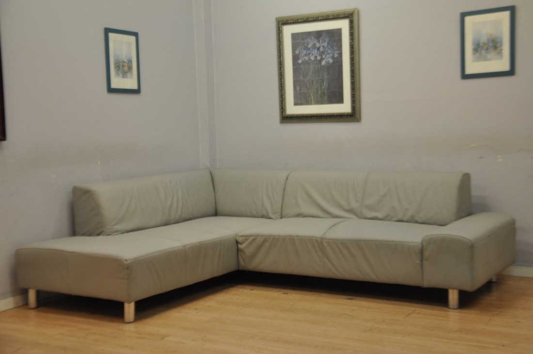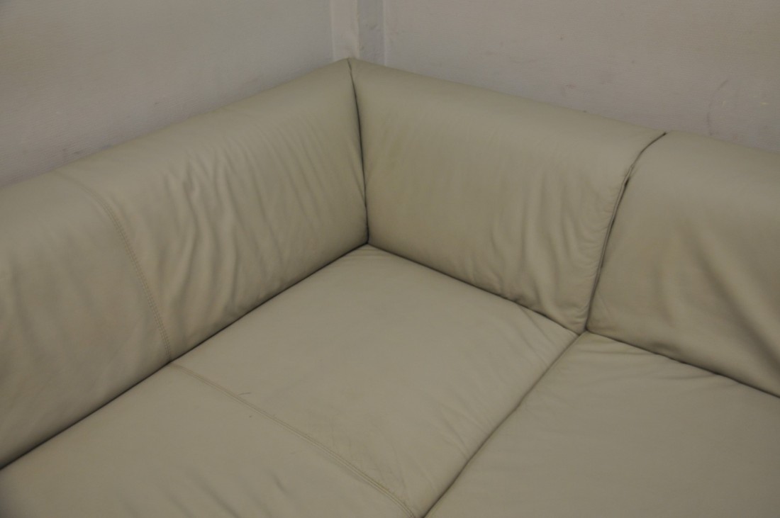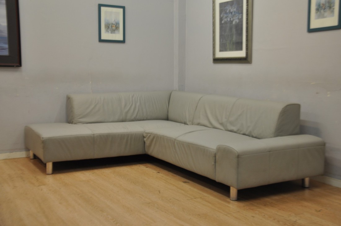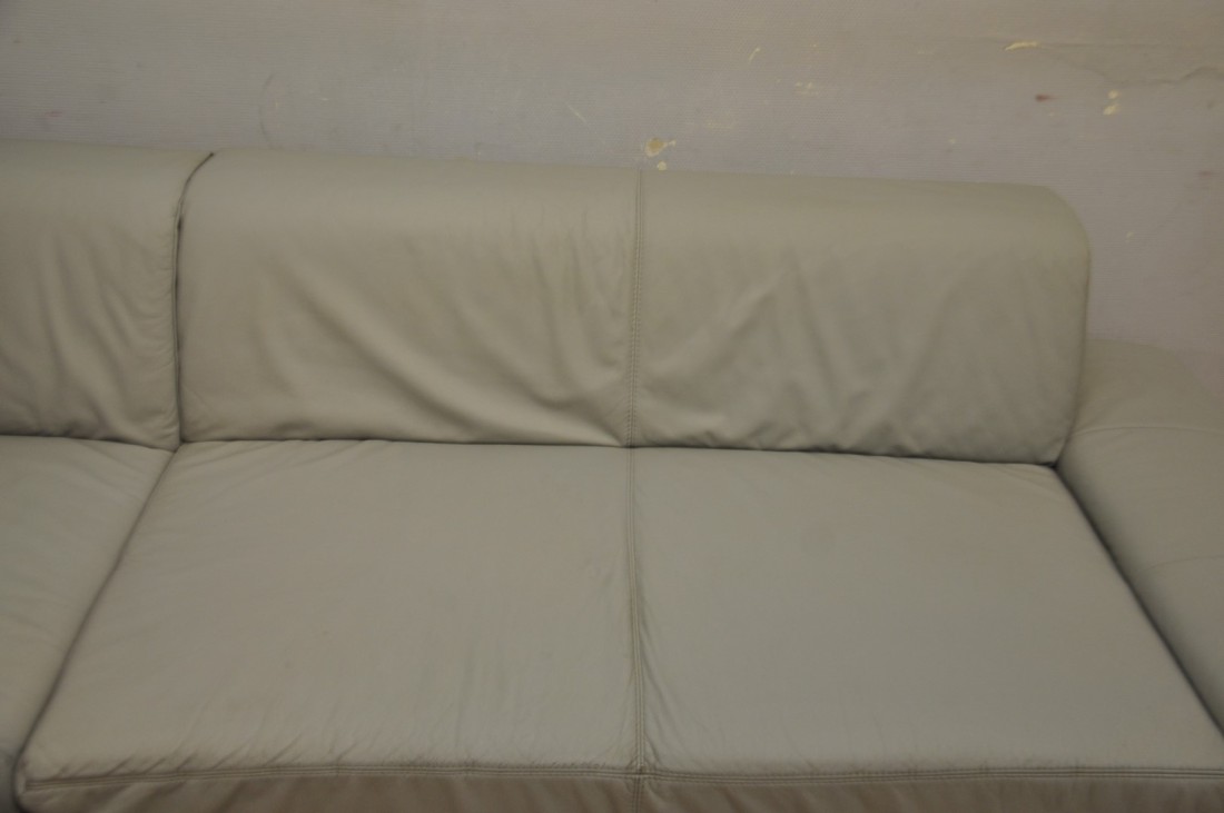 très beau salon en vrai cuir de couleur gris clair bleuté