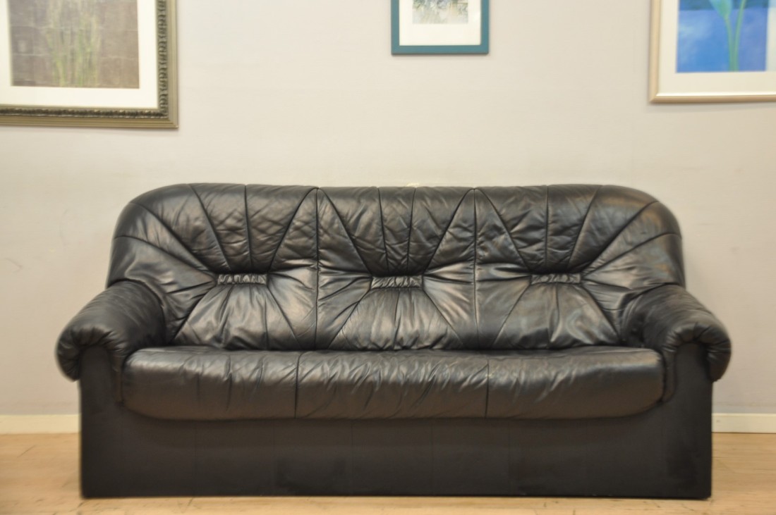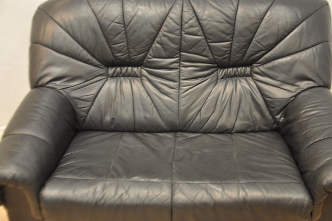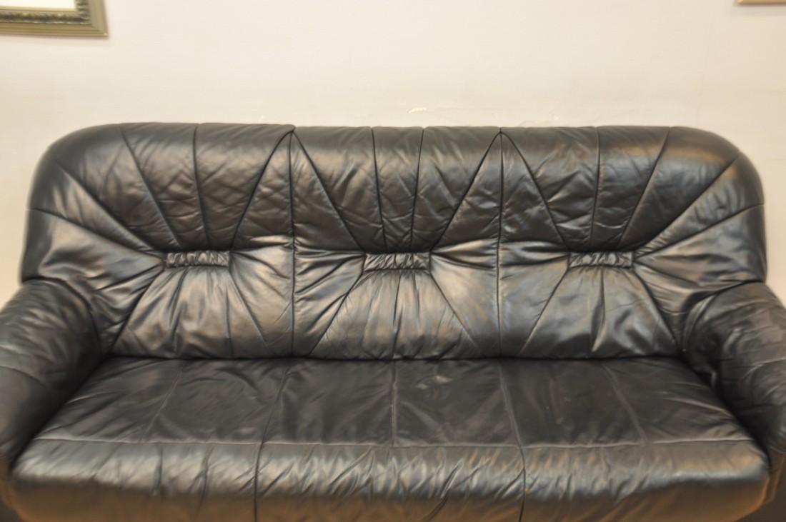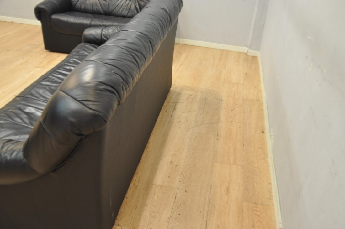 petit salon en vrai cuir de couleur noir