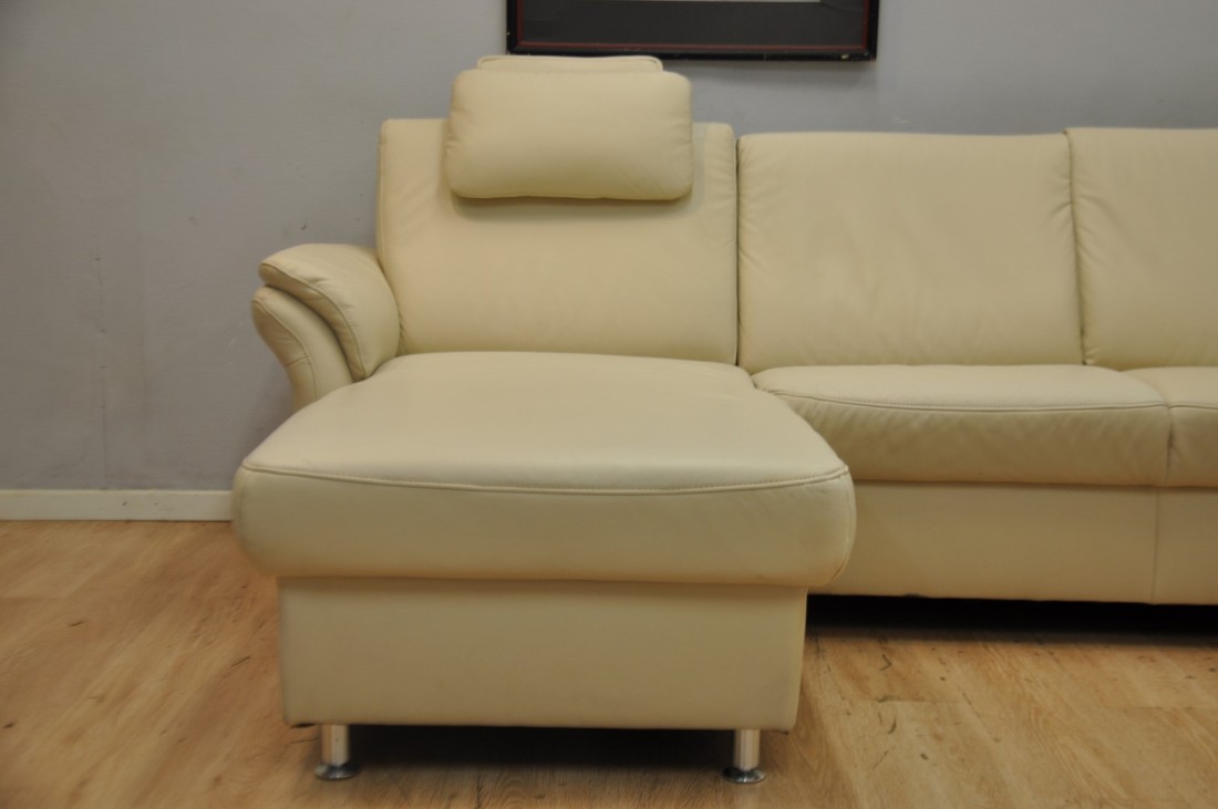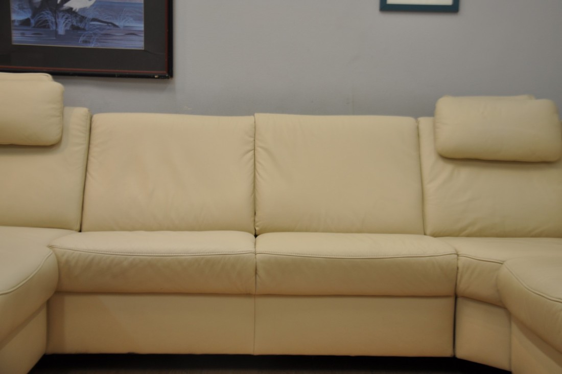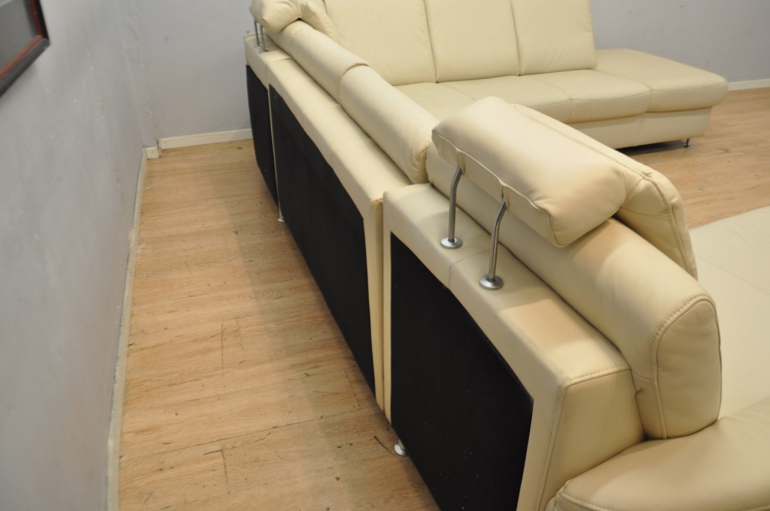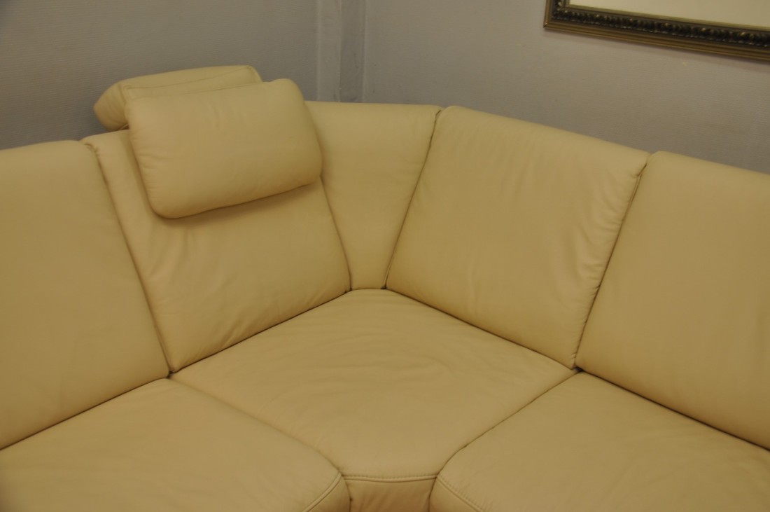 très beau salon en vrai cuir de couleur beige clair