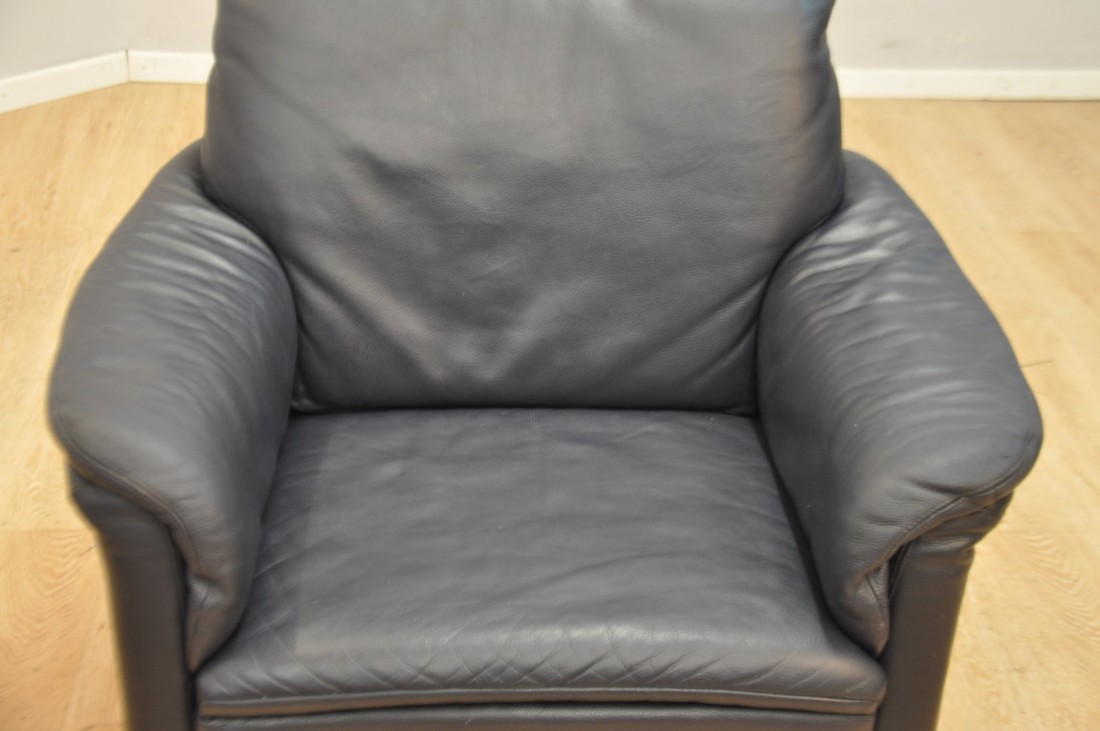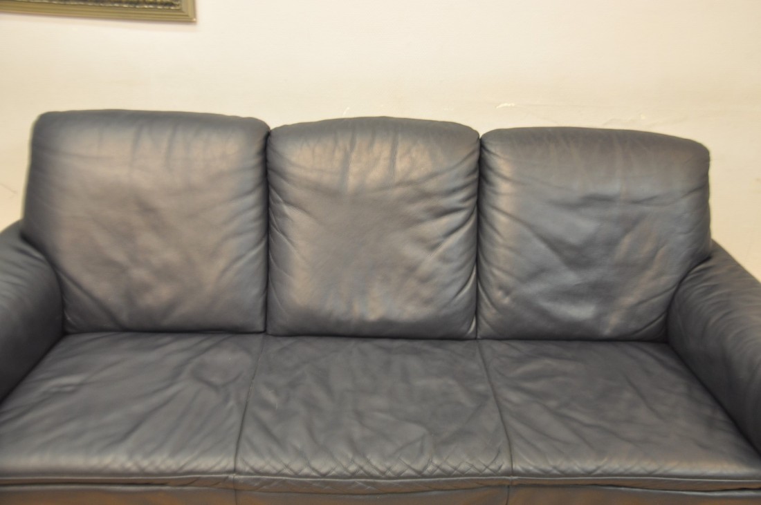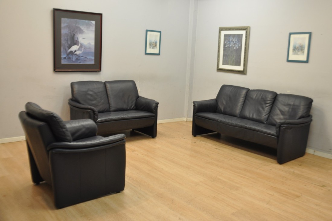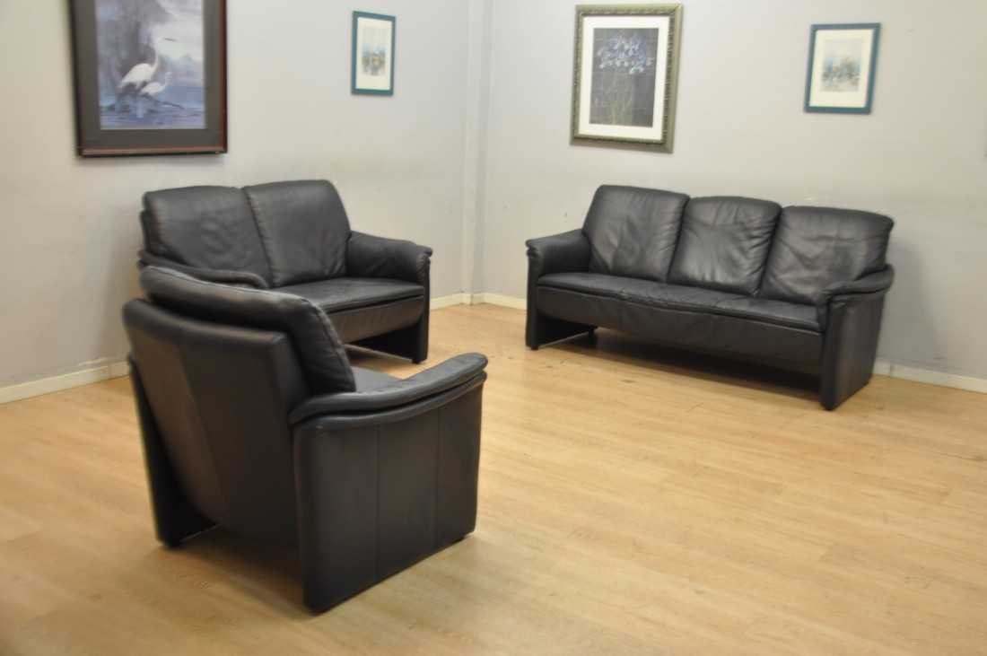 Très beau salon en vrai cuir de couleur gris foncé - bleu foncé