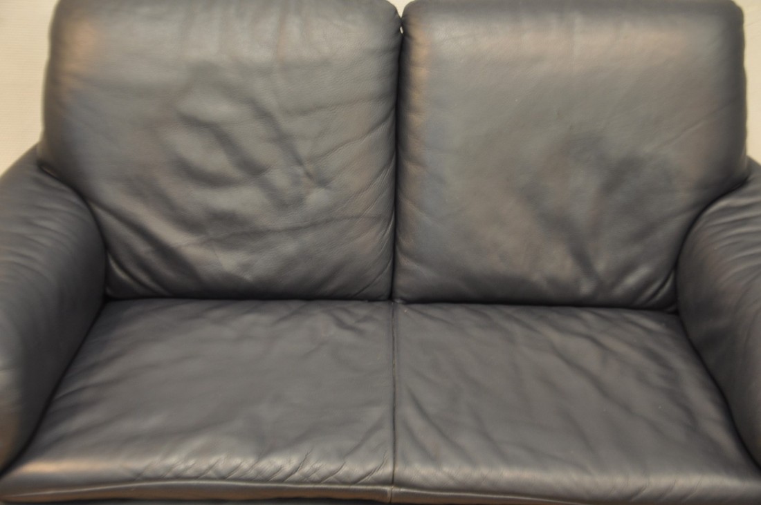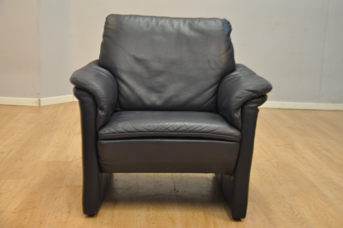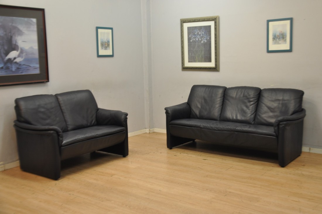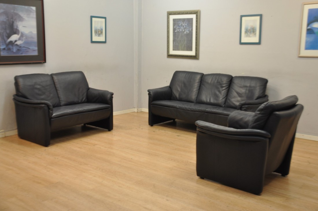 Très beau salon en vrai cuir de couleur gris foncé - bleu foncé