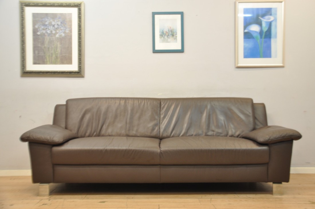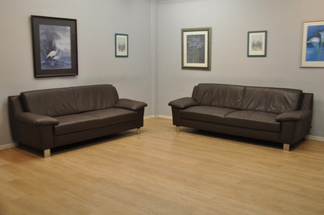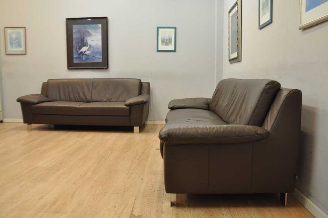Très beau salon en vrai cuir de couleur brun foncé-moyen