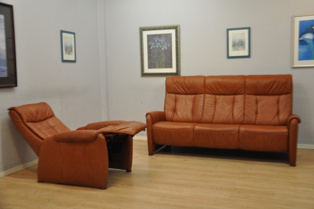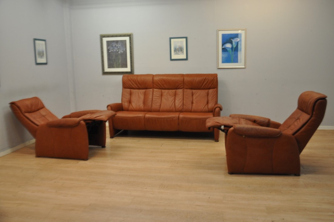 Très beau salon CUIR 3+1+1 relax Himolla hauts dossiers