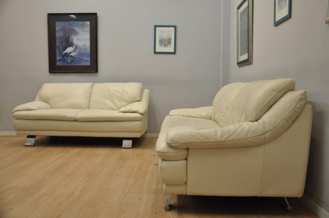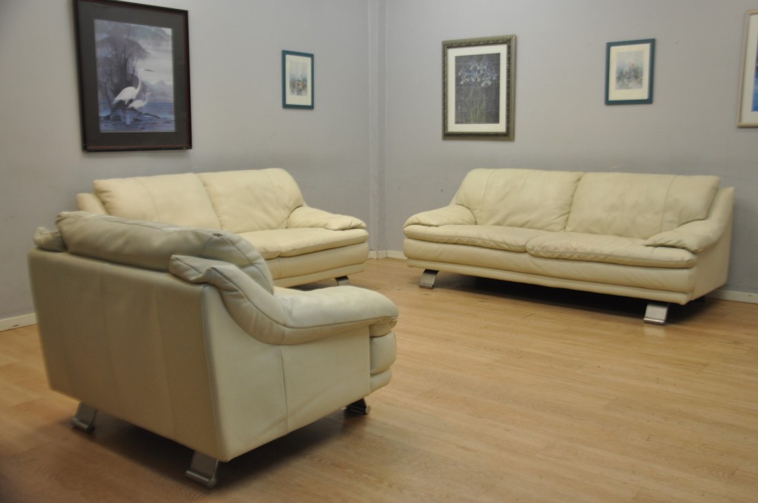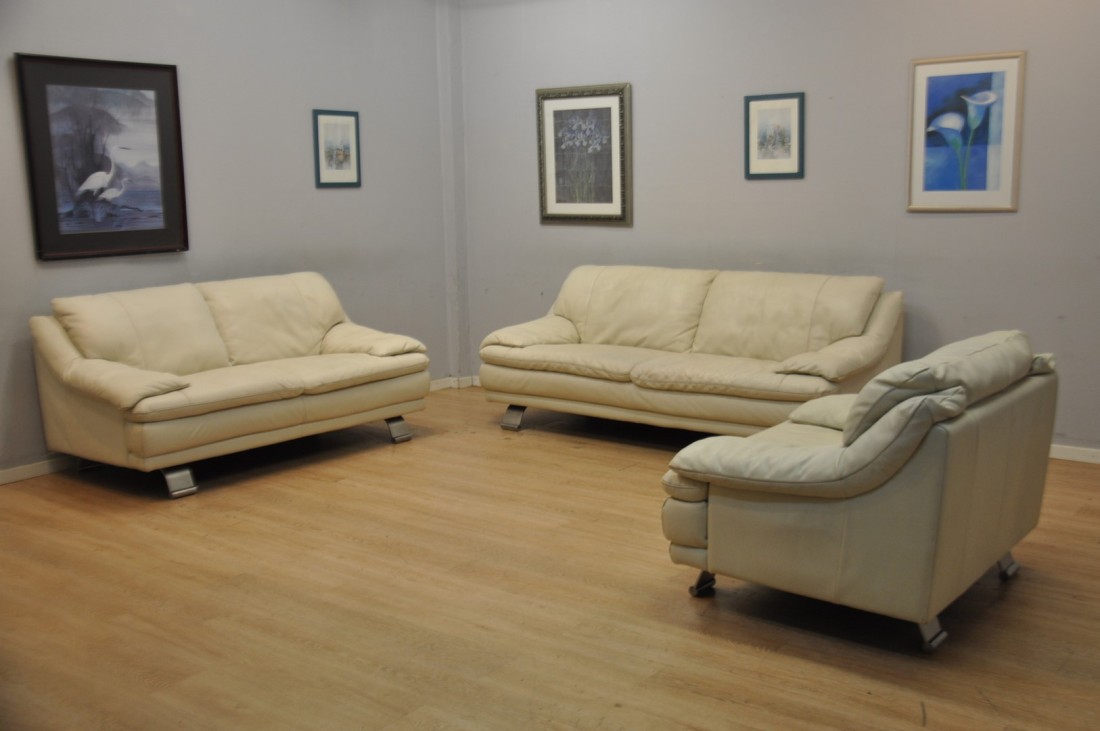 Beau salon CUIR Italien 3+2+1 blanc cassé*