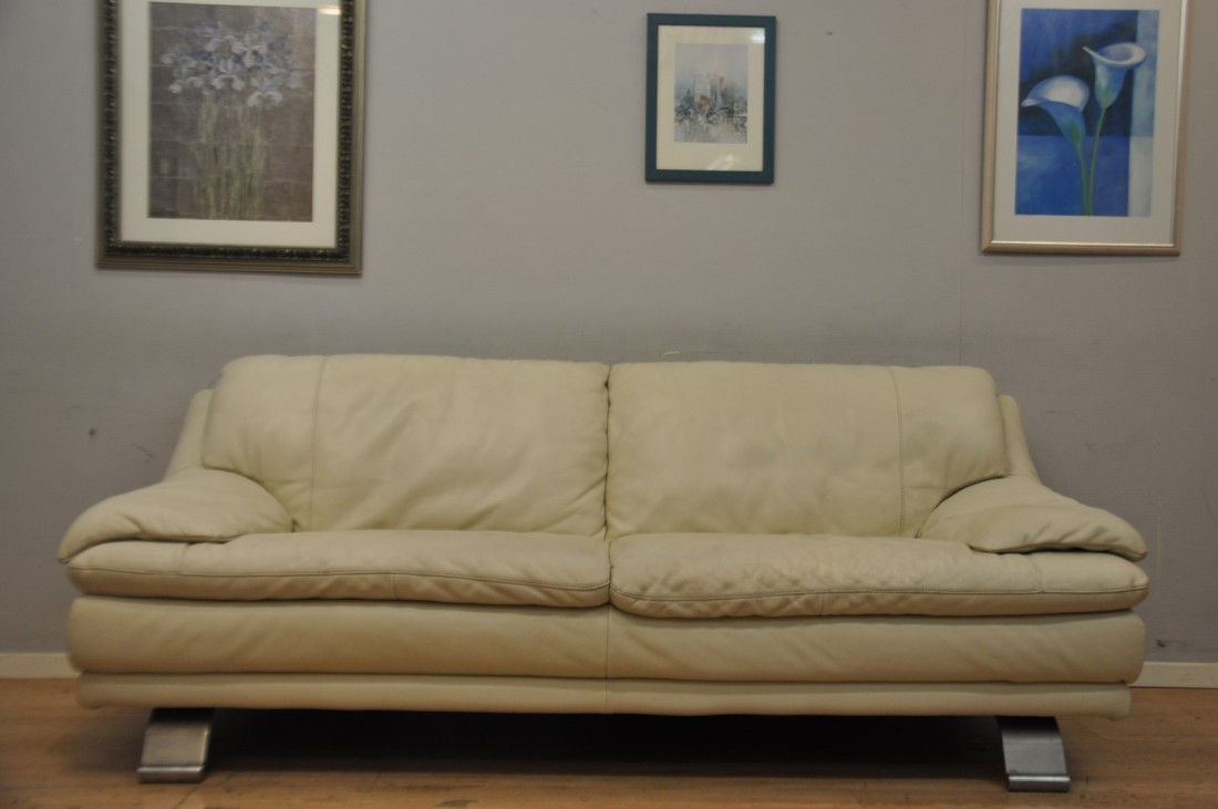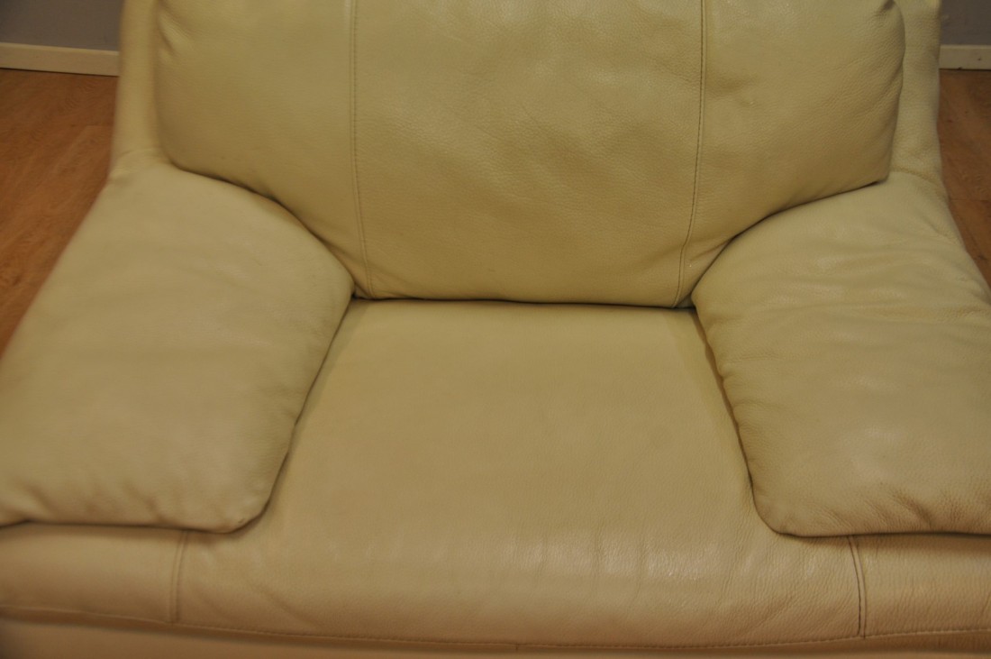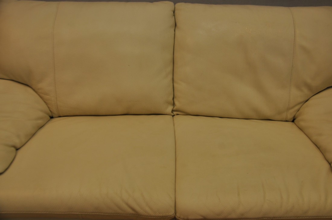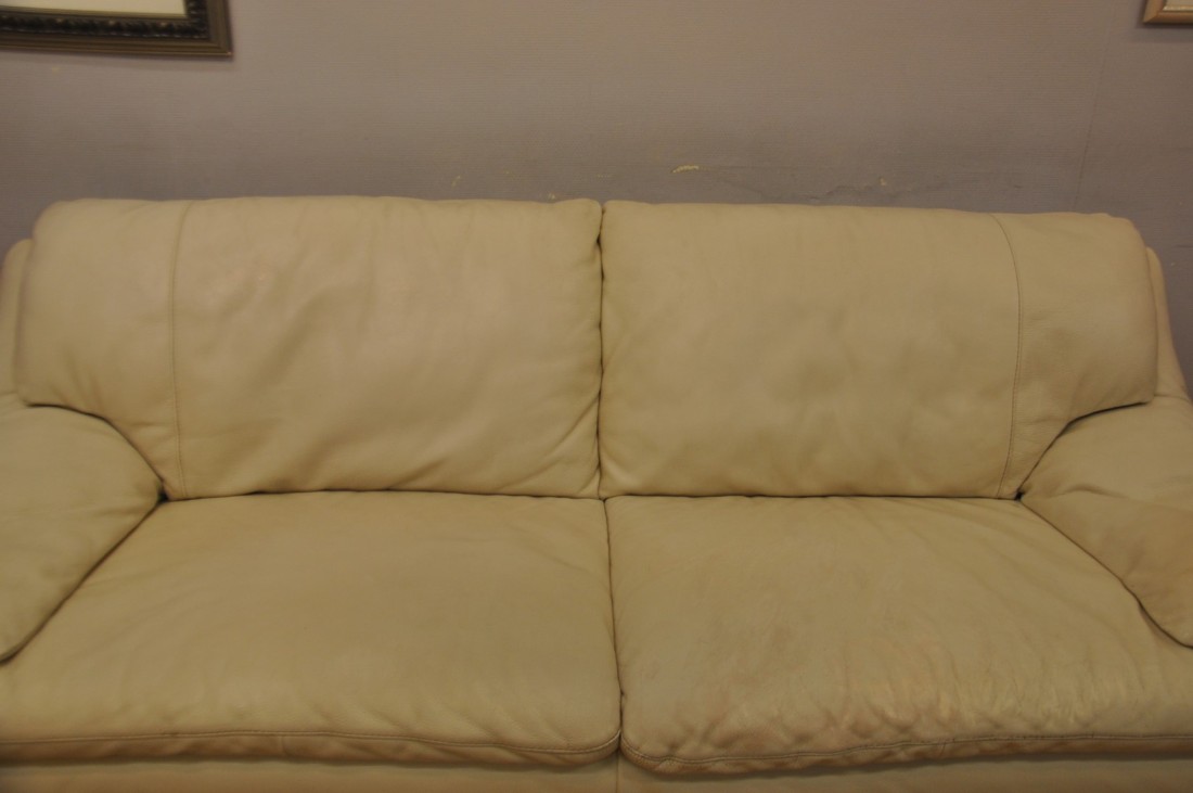beau salon en vrai cuir de couleur blanc cassé un peu plus clair que sur les photos