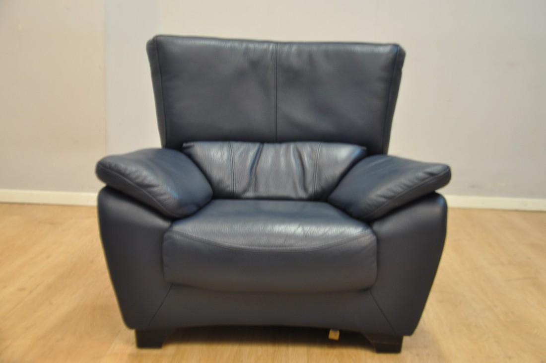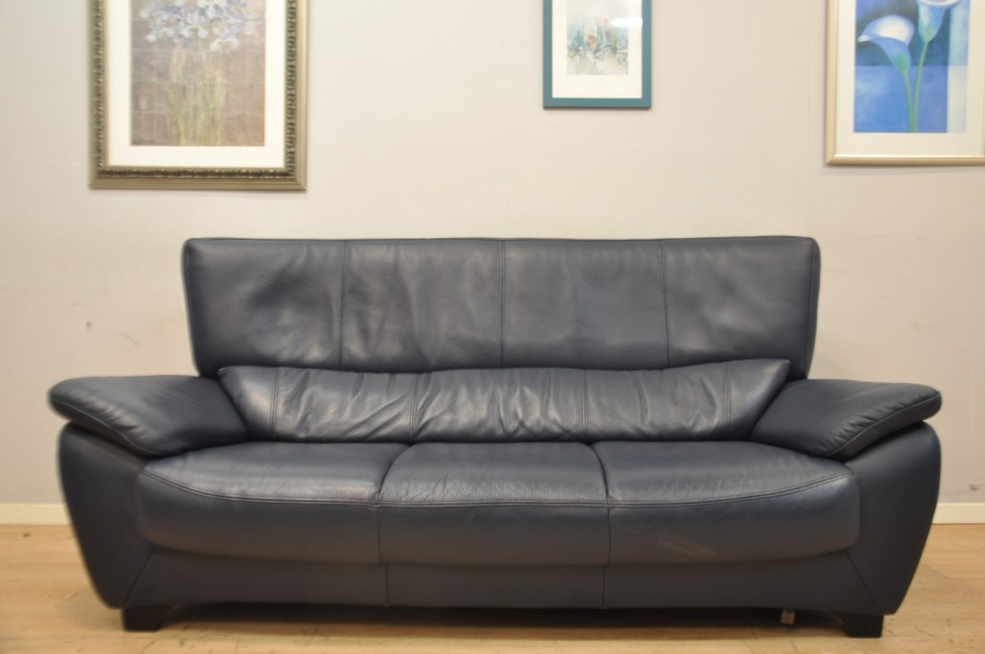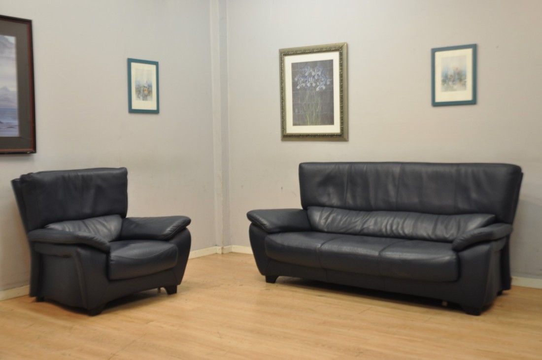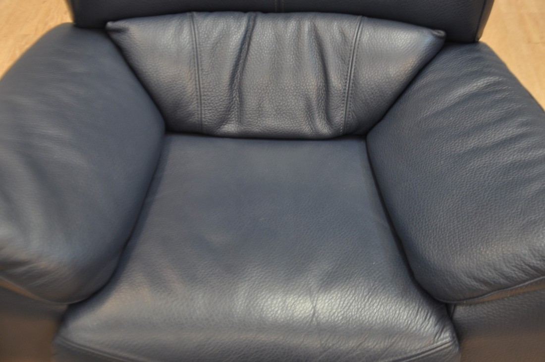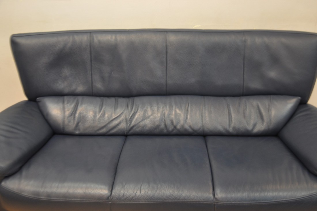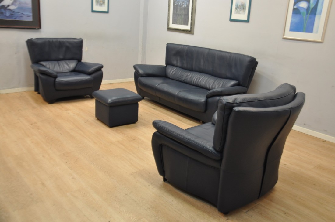 superbe salon en vrai cuir grainé de qualité de couleur bleu